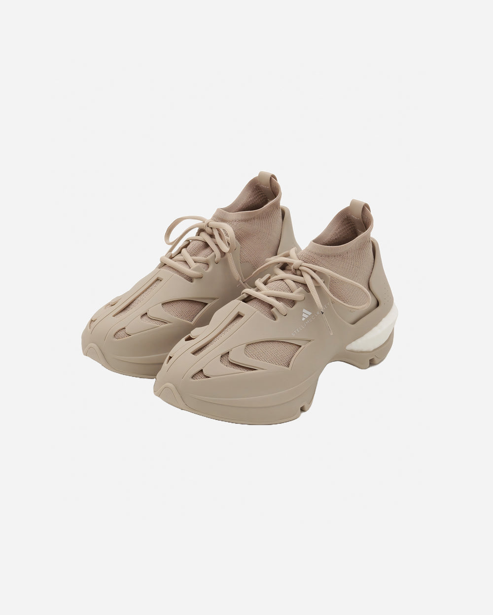 Adidas x Stella McCartney infunde experiencia de alto rendimiento con una visión de la moda. Las zapatos deportivos Solarglide tienen una parte superior de goma moldeada ergonómicamente con una base de malla Primeknit y entresuela BOOST para un movimiento flexible.