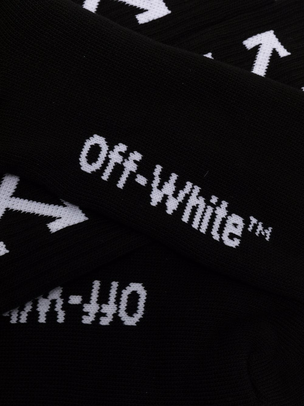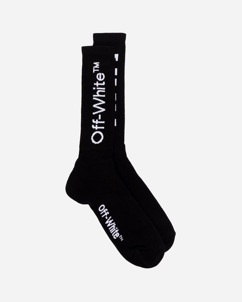 A staple accessory with unmistakable Virgil Abloh DNA, the Off-White™ Logo Sock in Black delivers that clean, graphic-driven edge the brand is known for. Crafted from a soft, supportive cotton blend, these crew socks feature bold vertical Off-White™ branding and the signature diagonal stripe motif—two of the most iconic elements from the label’s visual language.