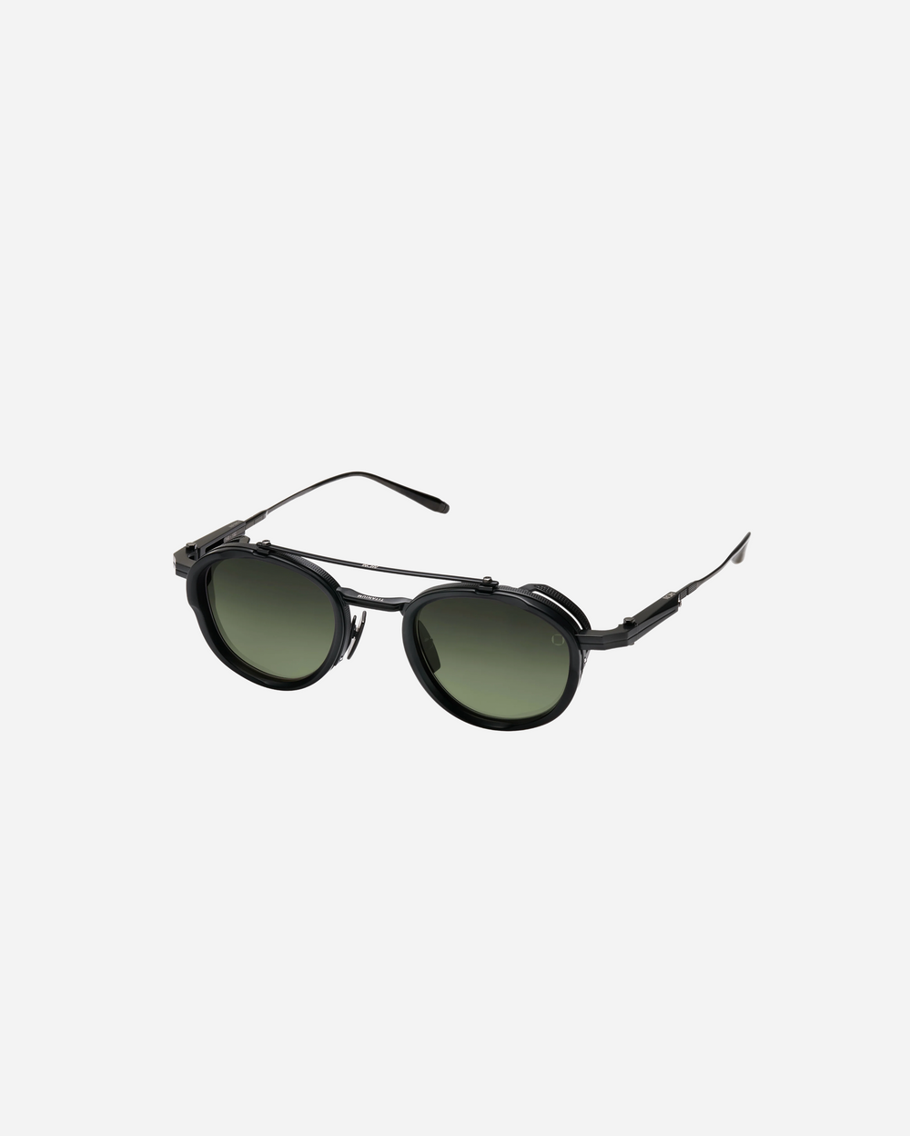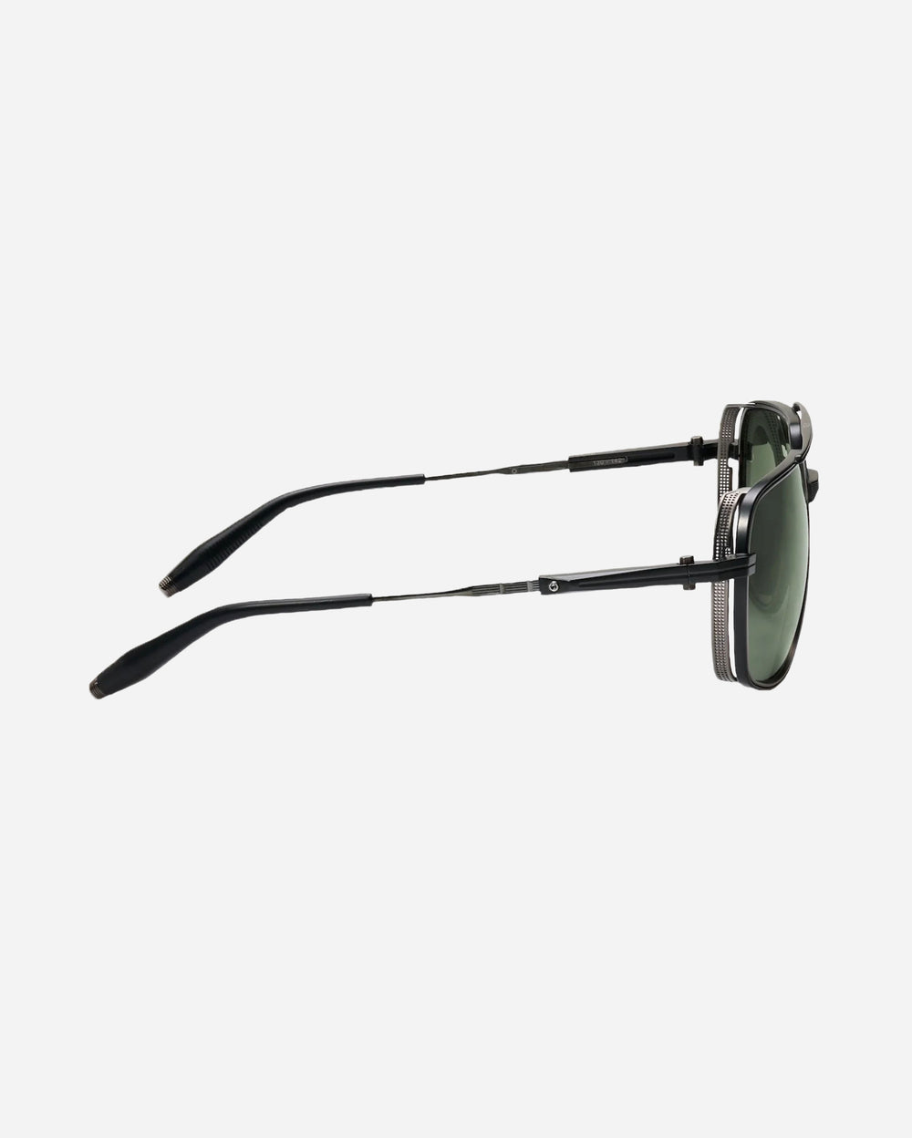 Inspirado en la inmensidad del cosmos, este innovador diseño reinterpreta la icónica forma Skymapper y las características Solis con una ingeniosa fusión de materiales. Este impactante diseño presenta un frente de acetato combinado con un distintivo marco de titanio con media montura y media montura de acetato, con detalles naylor, creando una sofisticada interacción de materiales.