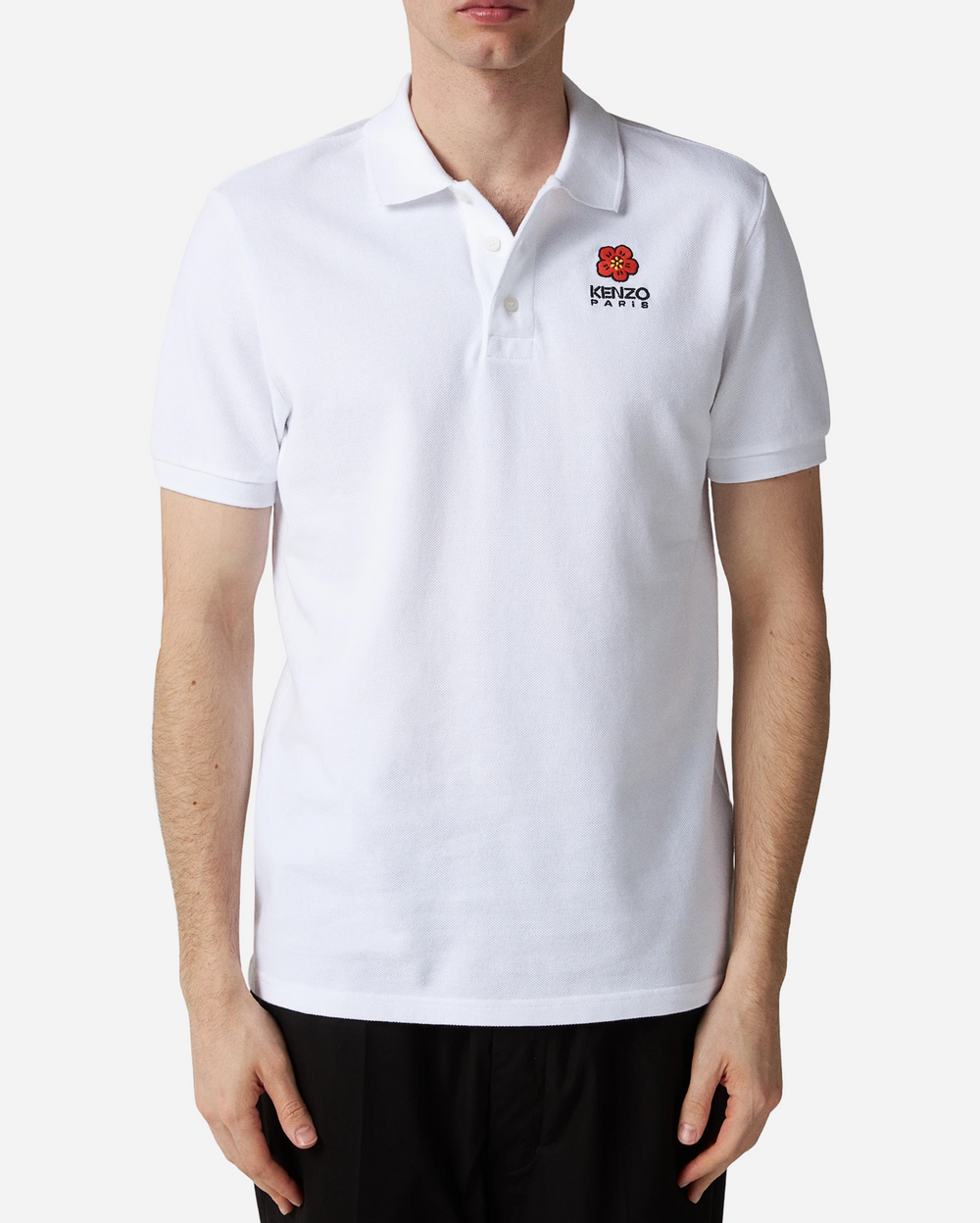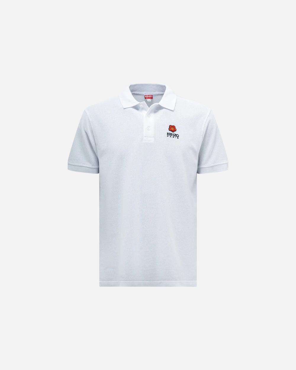 The Kenzo Flower Crest Polo brings a refined, modern touch to a timeless essential. Crafted from premium cotton pique, it offers a breathable, structured feel with a smooth, natural stretch. Its crisp white base is elevated by the signature Kenzo Paris logo and embroidered flower crest—an iconic emblem that adds a subtle yet luxurious accent.