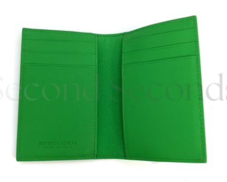 A sharp, modern take on everyday essentials, the Bottega Veneta Logo Bifold Wallet in Green delivers the brand’s signature minimalism with a bold pop of color. Crafted from smooth, high-quality leather, it features clean lines and an elongated contrast logo graphic—an unconventional twist that sets it apart from traditional wallets.