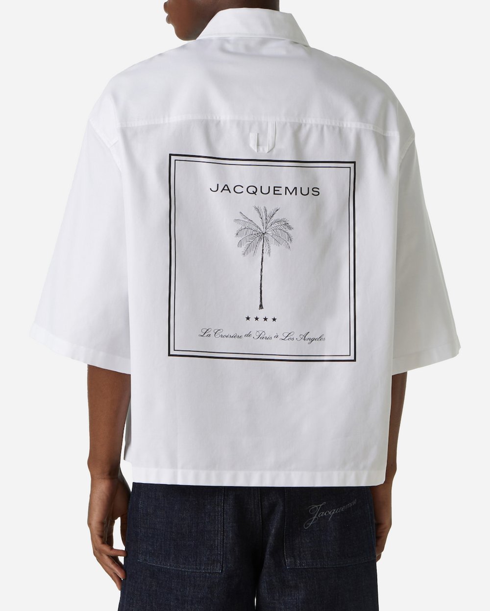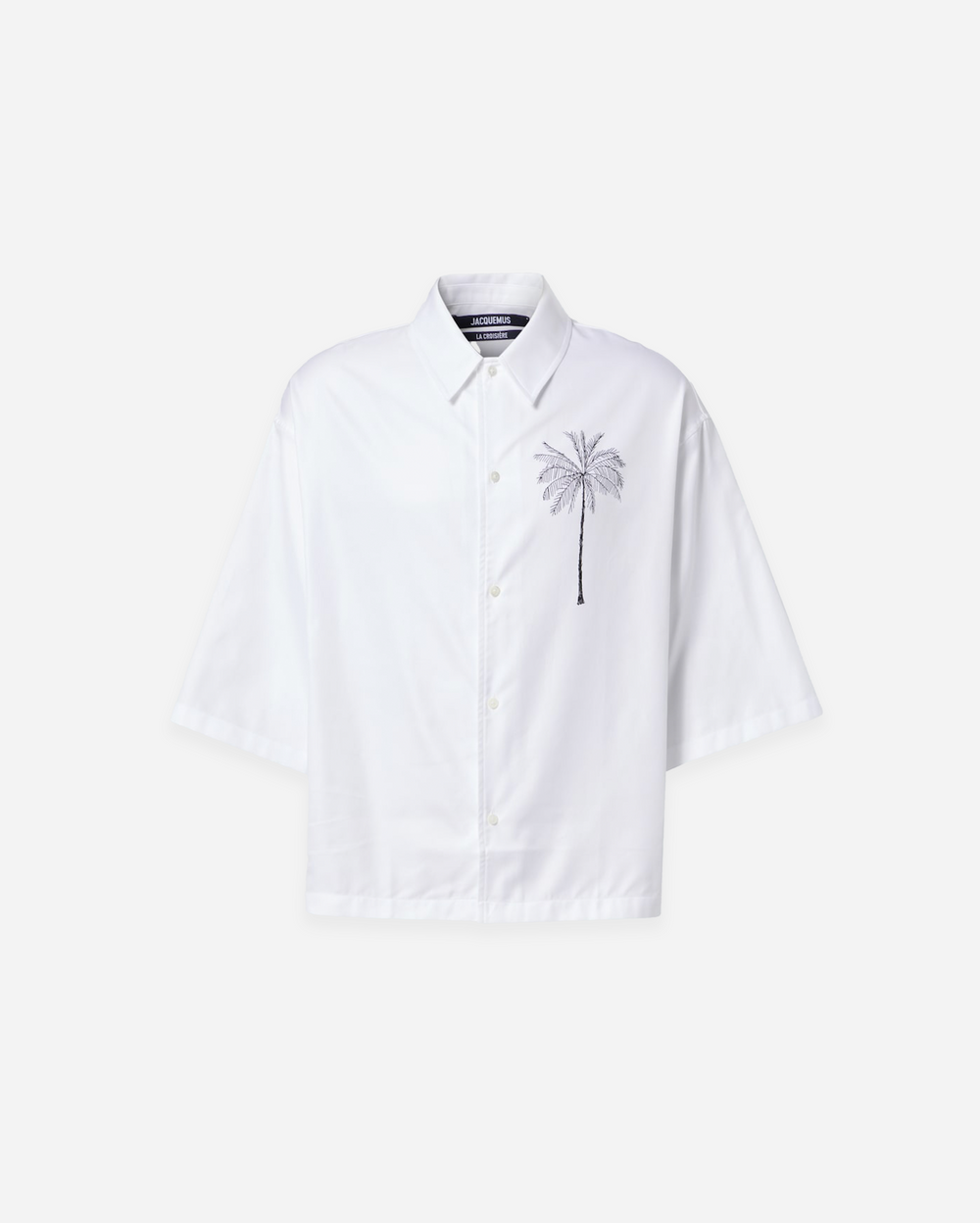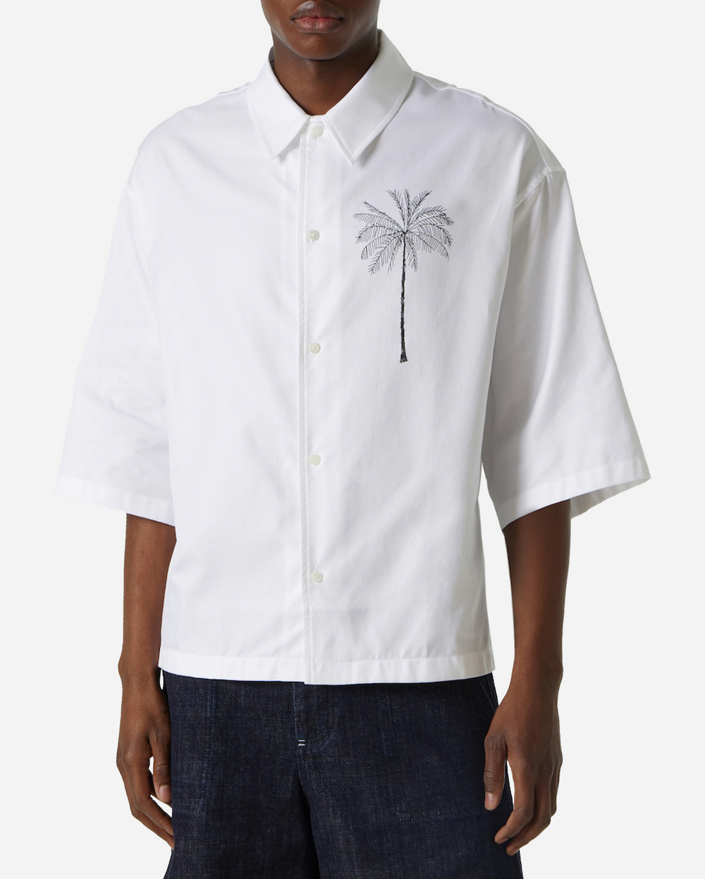 Esta camisa, hecha en Portugal, presenta un diseño distintivo en blanco con palmeras negras. Está confeccionada en 100% algodón, lo que garantiza comodidad y transpirabilidad.