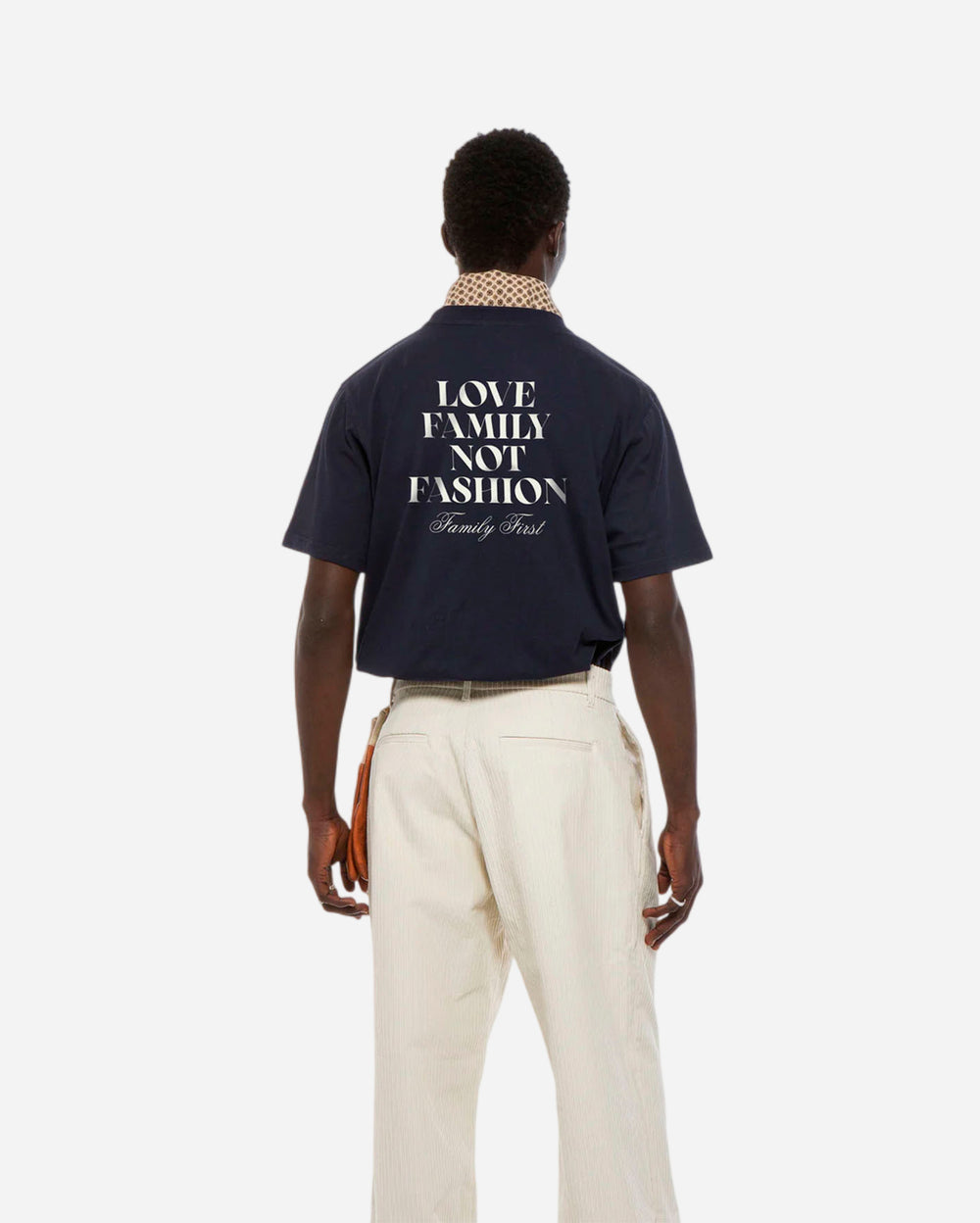 Front chest print reading “Love Family Not Fashion”
