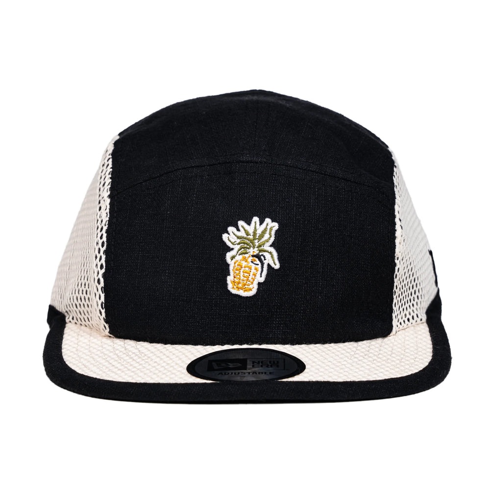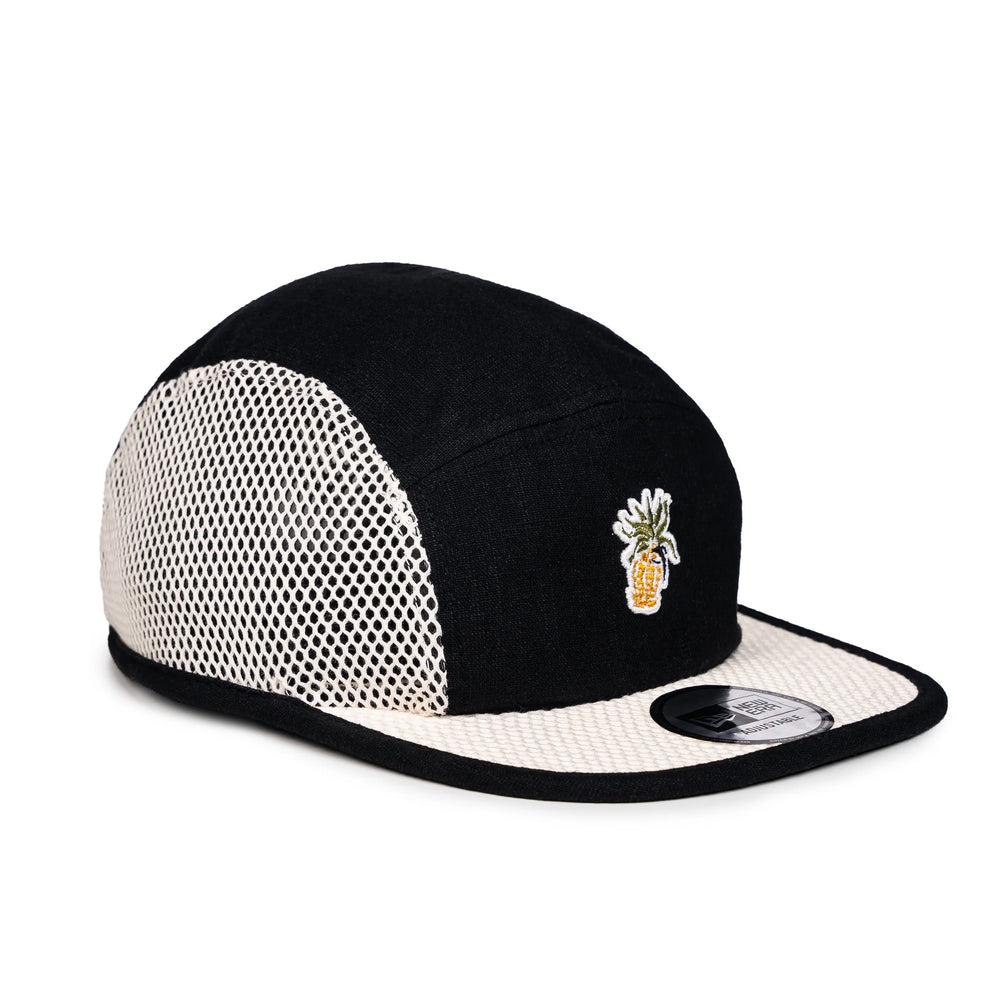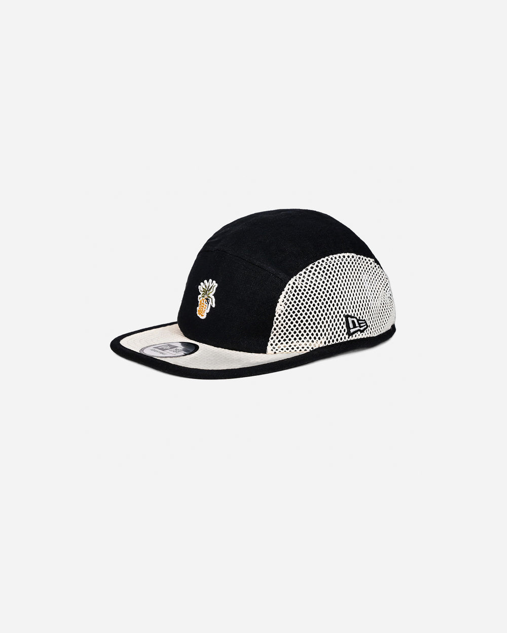 A playful yet performance-driven reinterpretation of the classic 5-panel silhouette, the New Era Pineapple Panel Cap delivers a fresh, summer-ready attitude wrapped in technical detailing. The cap features a lightweight mixed-fabric construction, combining breathable mesh side panels with a structured black crown for a sharp contrast and maximum airflow.