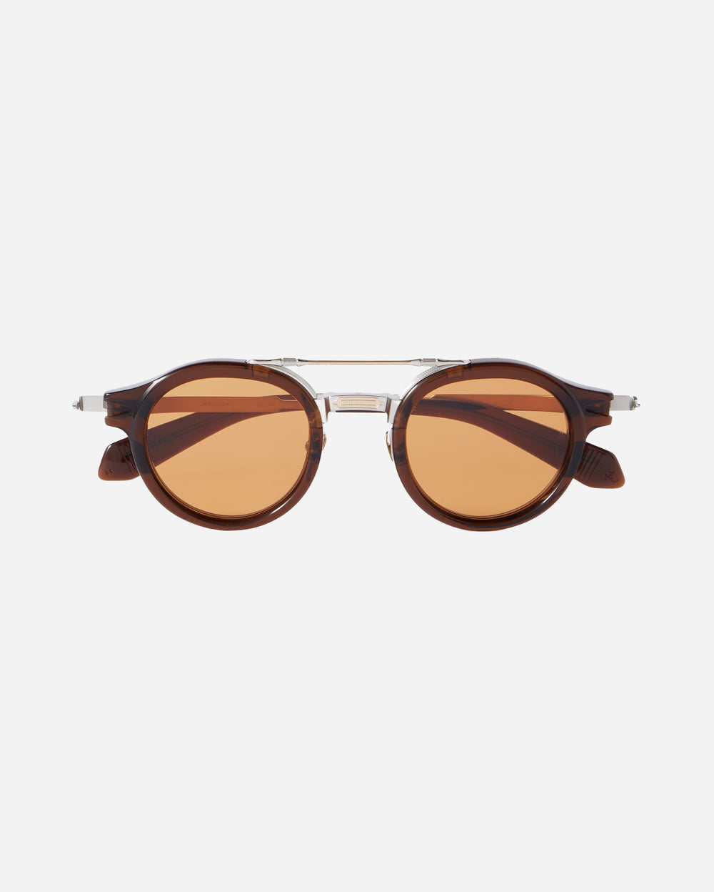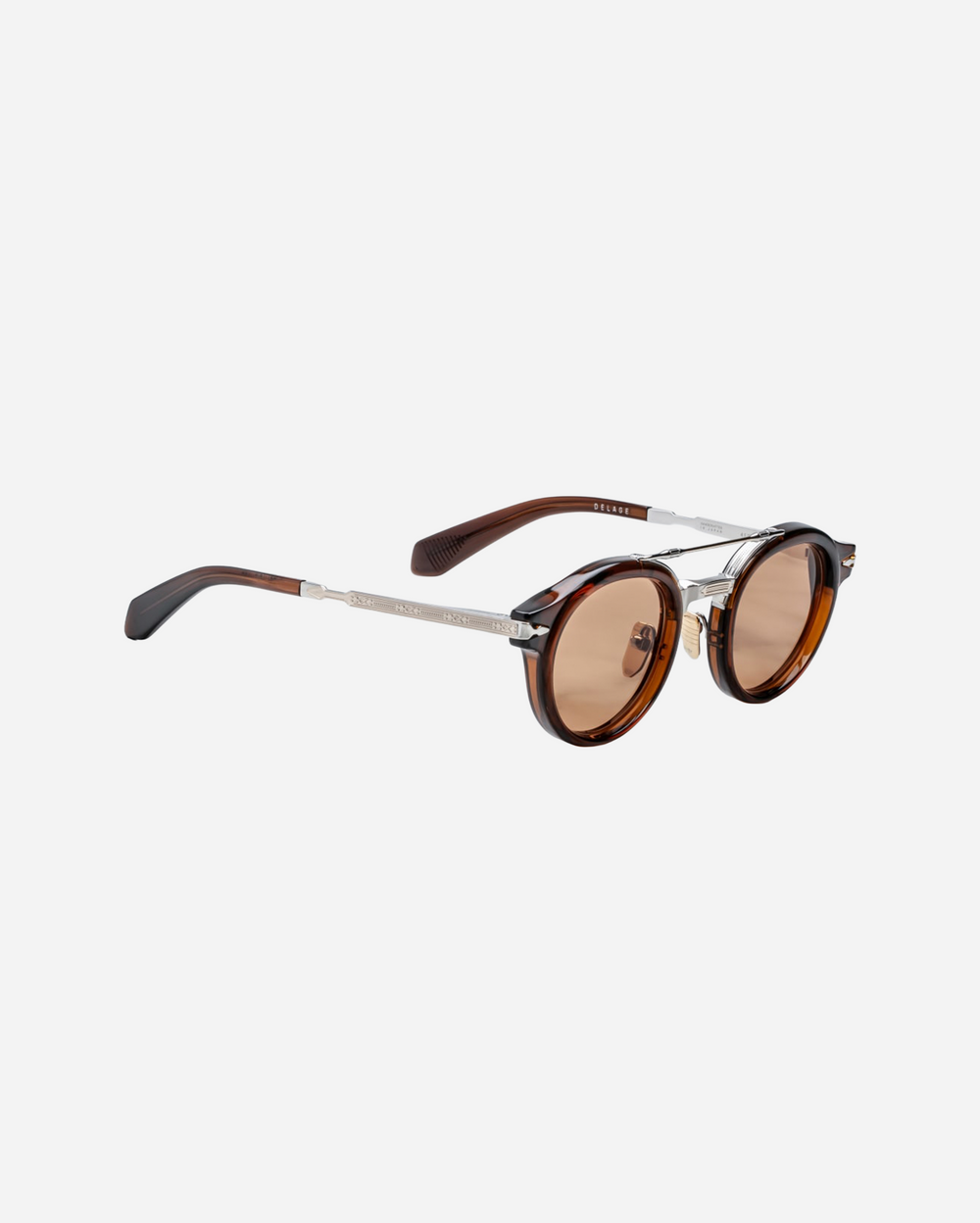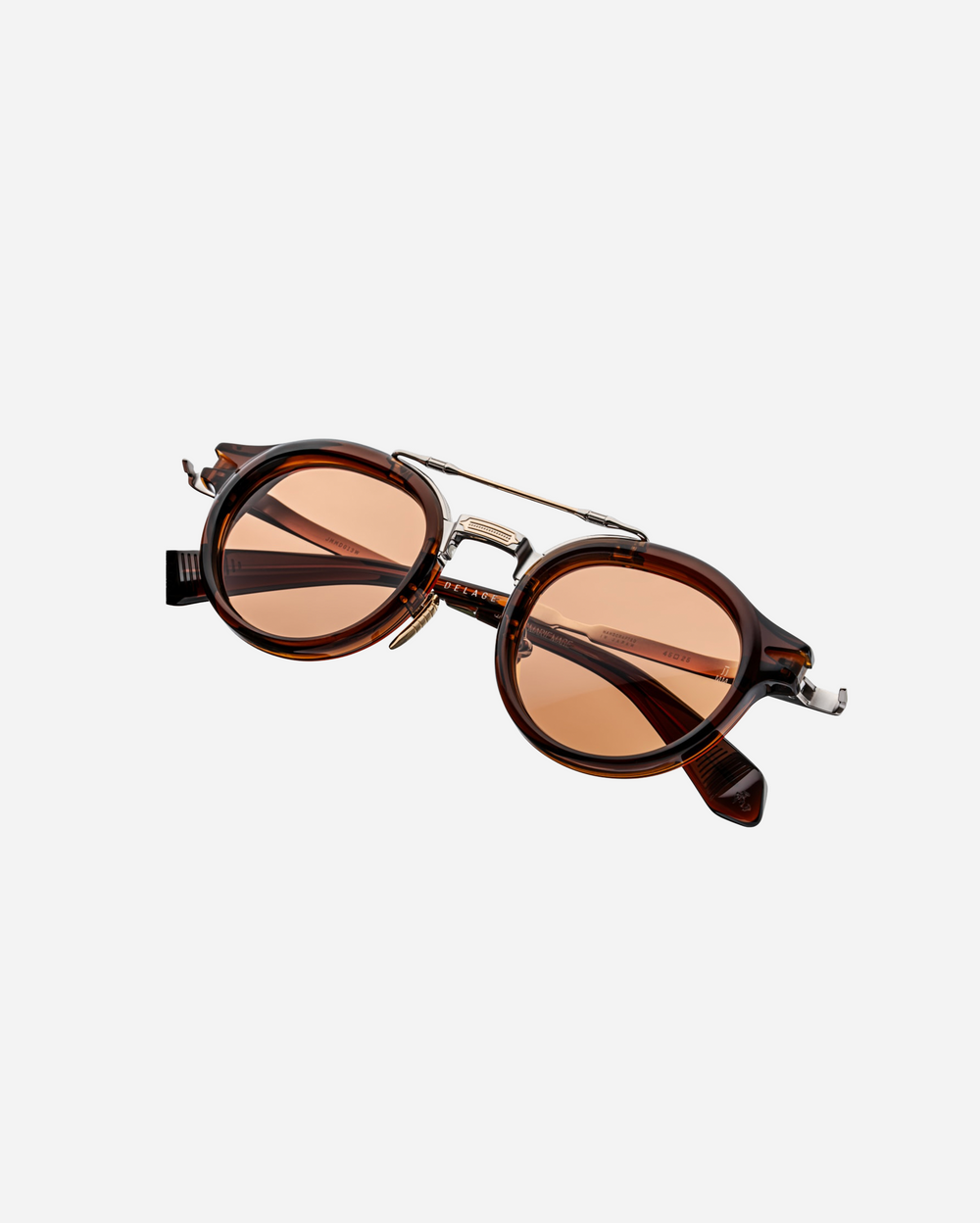 Las líneas fluidas y las delicadas decoraciones del Art Decó encuentran su forma perfecta en estas gafas inspiradas en los años 50, creadas para la ciudad moderna. Un llamativo marco de acetato con un distintivo puente de titanio en la patilla subraya la elegancia segura de estos anteojos y transmite un sutil toque de tiempos pasados.