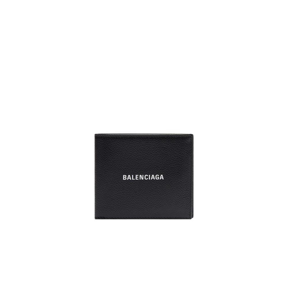 The bold white BALENCIAGA logo on the front adds a clean, graphic touch, elevating this classic accessory with signature branding. Its compact bi-fold design ensures practicality while maintaining a slim profile that fits easily into any pocket.