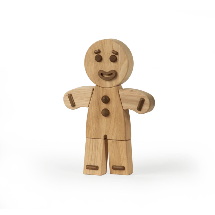 He’s still very attractive. Now created with the best ingredients: solid oak in two colors and assembled with magnets so you can change his expression. Hold tight onto this Gingerbread man if you have a taste for design delights.