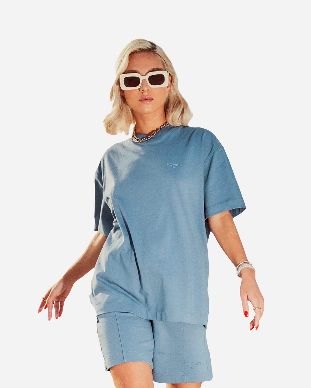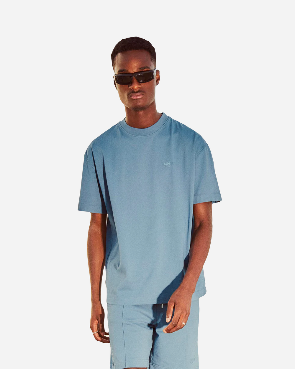 Relaxed fit t-shirt made of 100% double jersey cotton in placid blue with an enzyme finish. Featuring an original Homiés Club logo high desirty print on the chest in fabric matching colour. Inspired by our community wardrobe essentials, this piece comes as a high-end must to wear day to day.