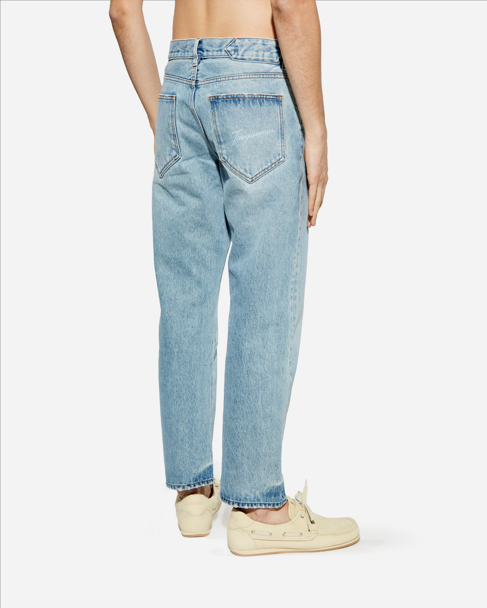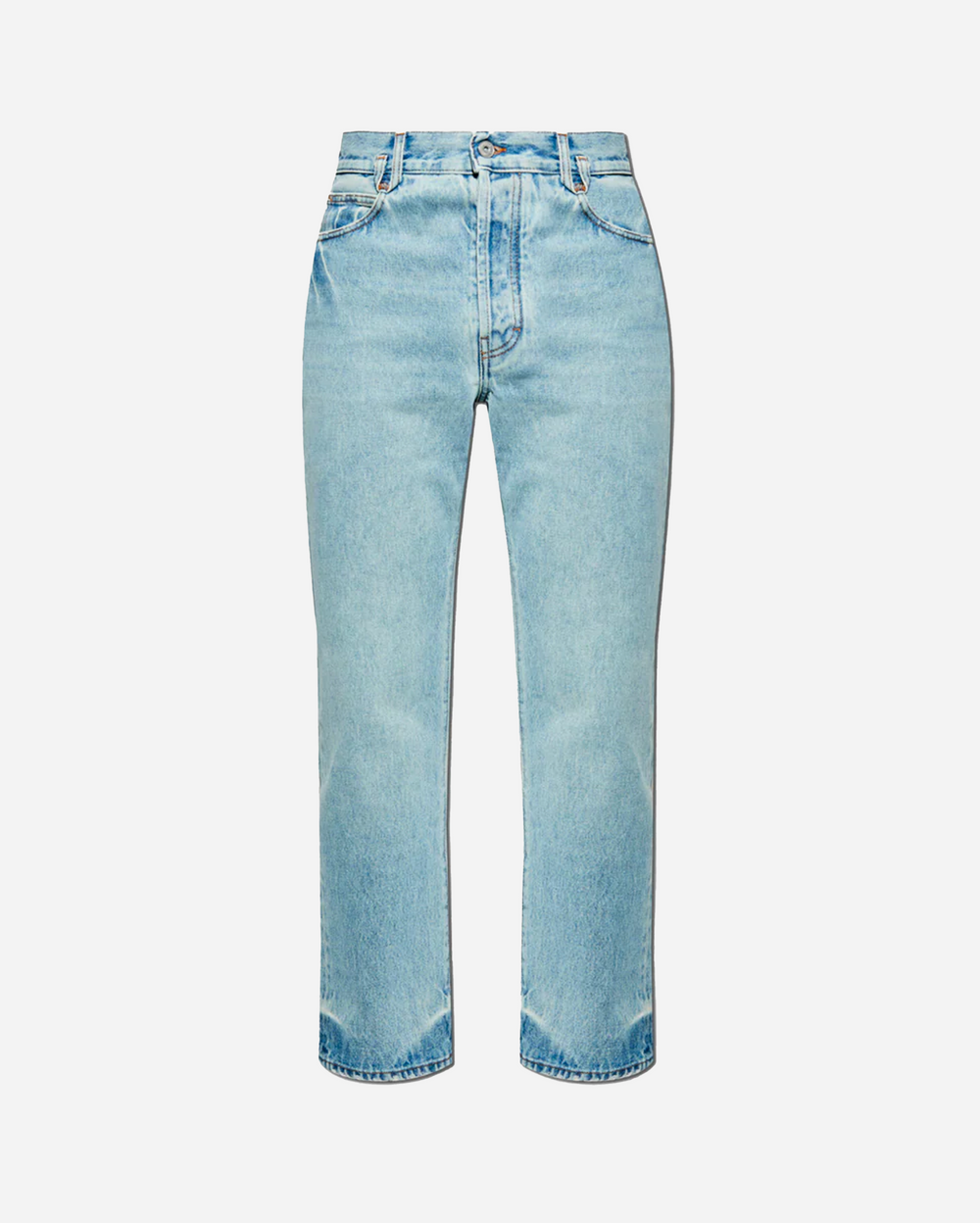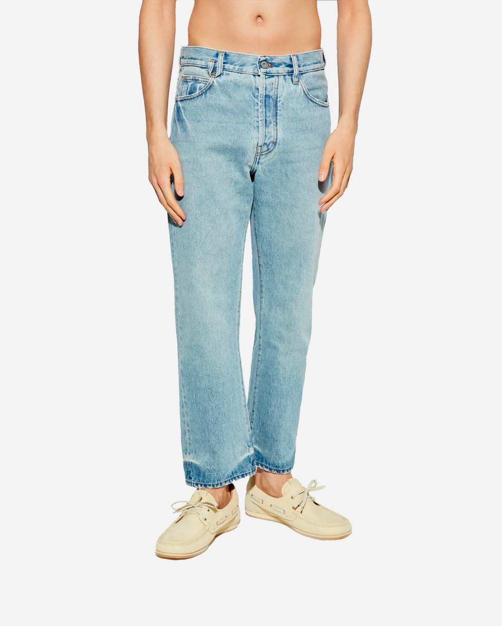 Confeccionados con algodón de la más alta calidad, estos jeans presentan un corte clásico, recto y de ajuste regular, dándoles un aspecto elegante y tradicional, realzado por su predominante color azul claro.