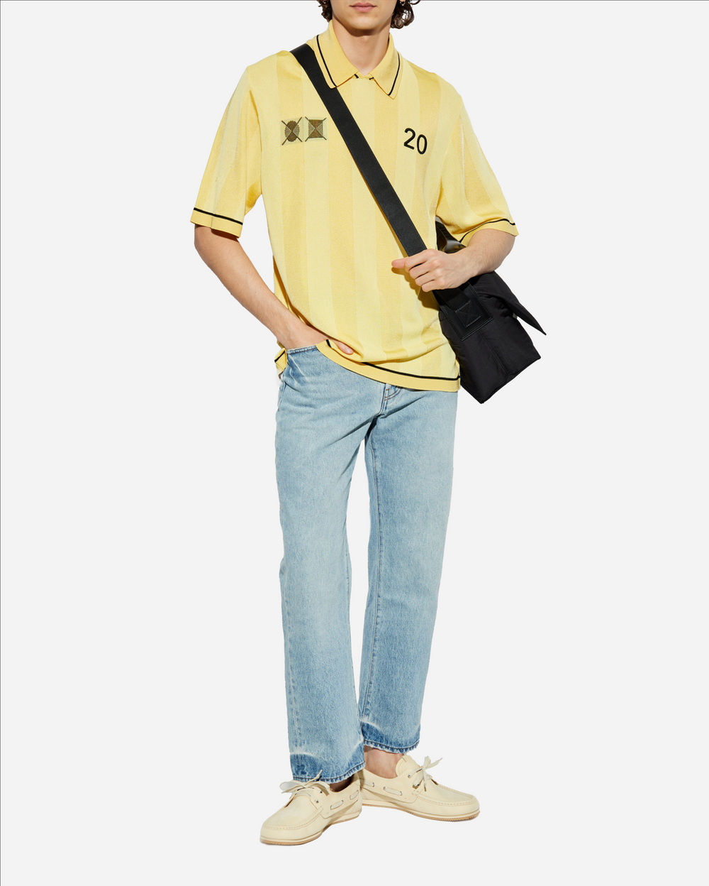 Detalles como el distintivo logo del diseñador colocado en el bolsillo trasero enfatizan su carácter exclusivo. El cierre estándar de botón y cremallera, combinado con cinco bolsillos, proporciona no solo funcionalidad sino también un estilo atemporal. 100% Algodón.