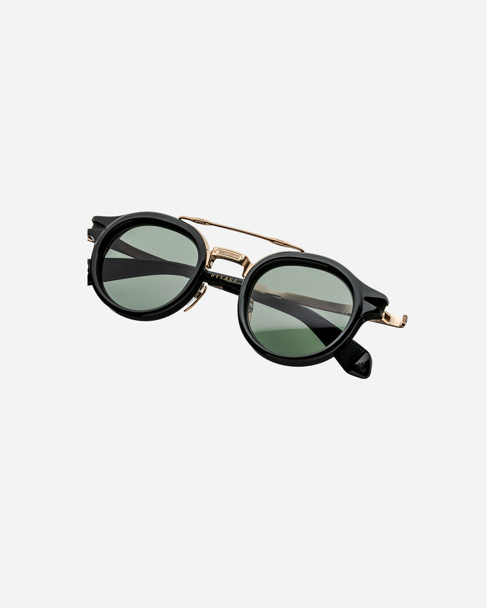 Las gafas de Jacques Marie Mage se elaboran artesanalmente en el taller japonés de la marca mediante un proceso de diseño de 300 pasos. Inspiradas en los estilos de los años 50, estas gafas de sol están hechas de metal dorado y acetato, y presentan una montura redonda con doble puente