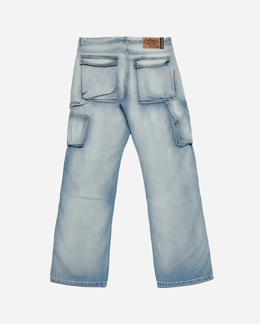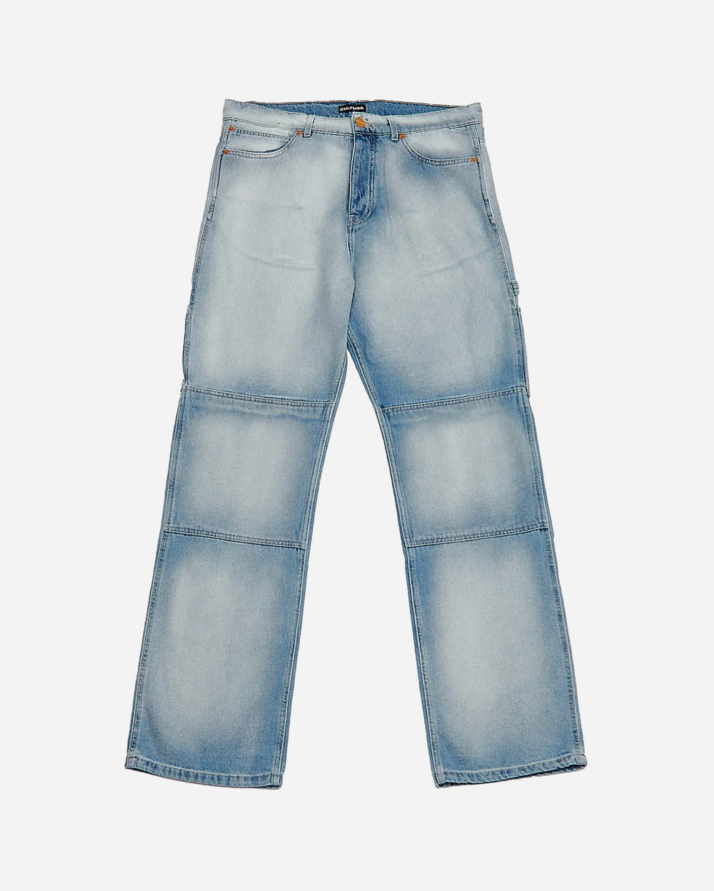 Pantalones de vaquero de lavado claro con un tratamiento de deshidratado en spray para un aspecto desgastado. Su confección resistente, inspirada en la ropa de trabajo, ofrece comodidad relajada y durabilidad a prueba del desierto, canalizando la energía pura del parís-dakar.