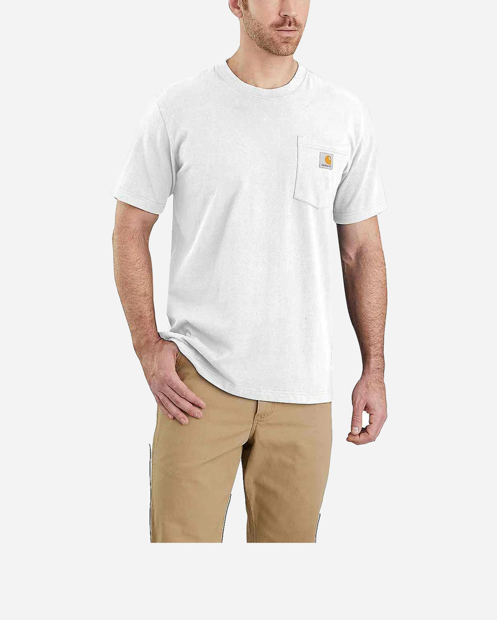 Designed with a relaxed fit, chest pocket, and the signature Carhartt square label stitched on the front, this tee delivers both comfort and utility—perfect for everyday wear or work settings.