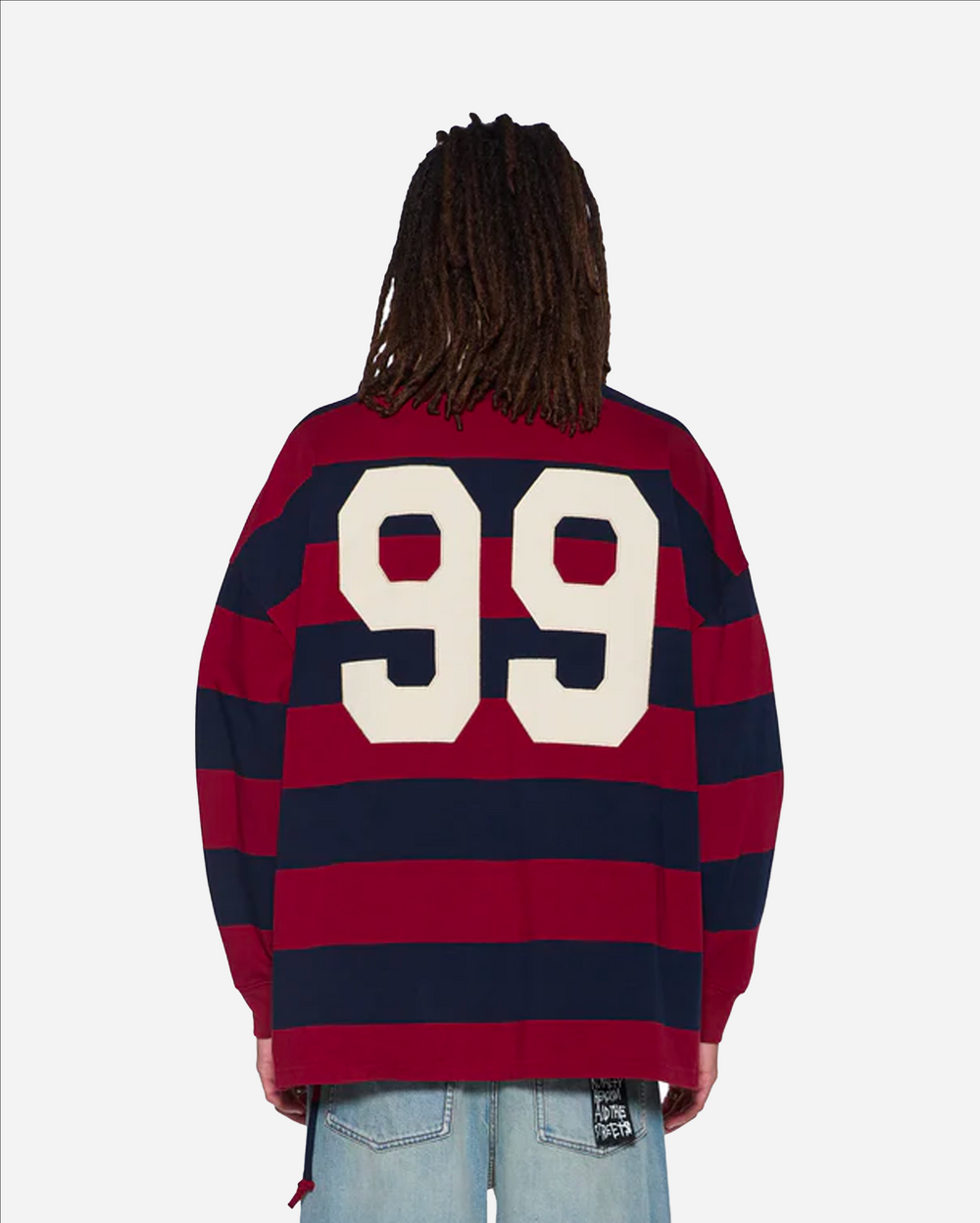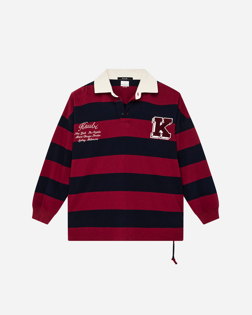 Crafted from premium cotton, this oversized rugby jersey blends classic sportswear with Ksubi’s signature edge. The Fire Fade delivers a cool, distressed tone, while applique detailing and multi-textural artwork elevate the design.