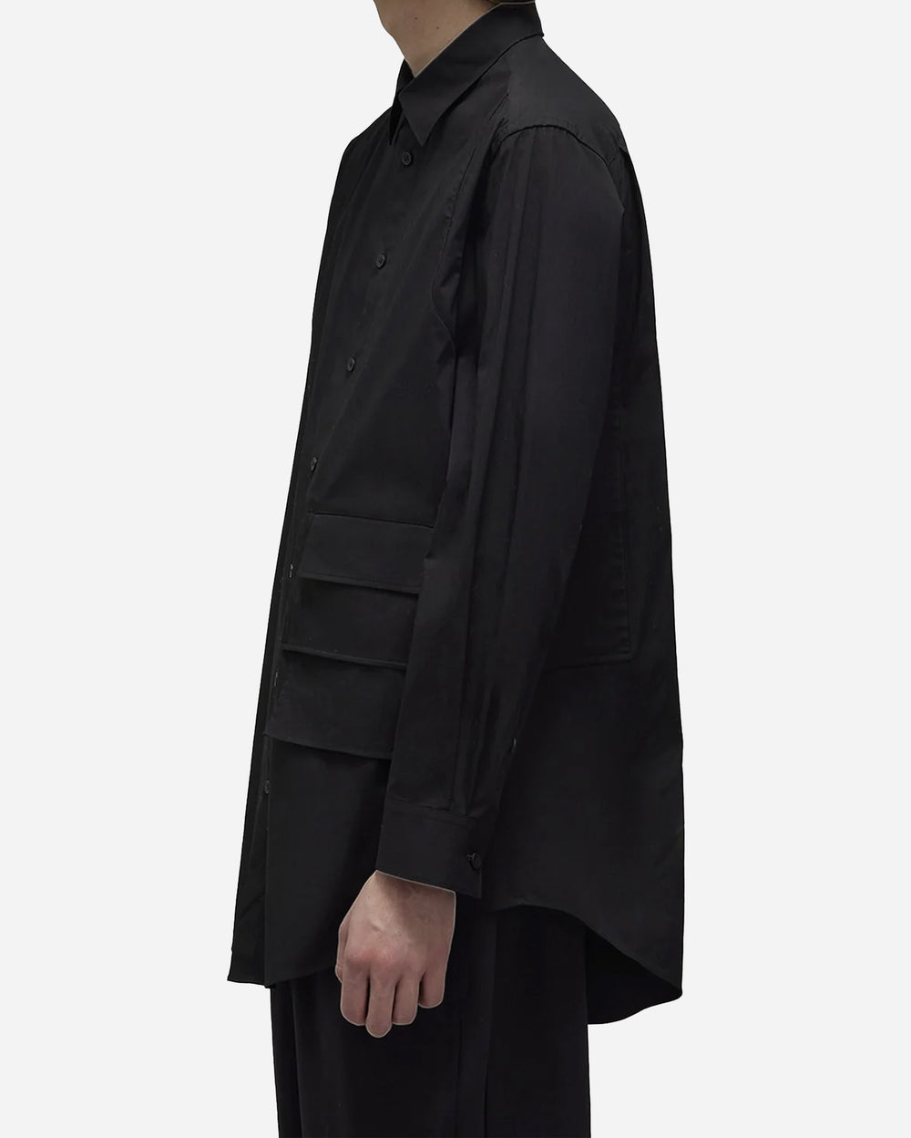 The Y-3 Utility Pocket Shirt is a modern, minimalist long-sleeve shirt designed with Yohji Yamamoto’s signature functional and avant-garde approach. Crafted in a sleek black tone, it combines clean tailoring with unexpected utility-inspired details.