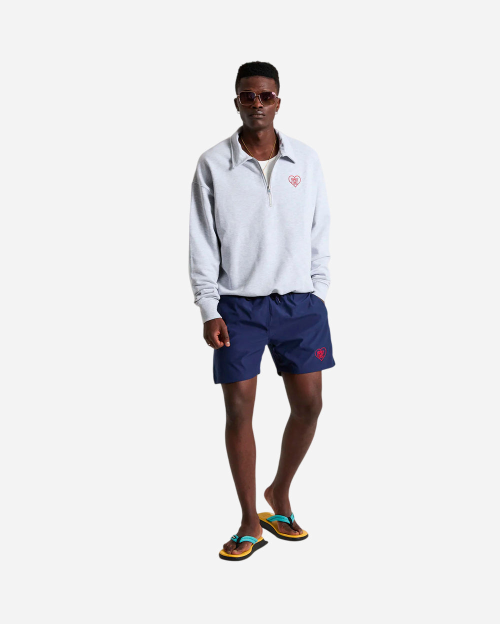 The Heart Swimshort delivers a clean, modern take on a summer essential, elevated with Family First’s signature graphic identity. Designed for comfort and movement, it features a lightweight construction and a shorter, athletic cut that feels contemporary and easy to wear. The embroidered red heart logo adds a sharp visual accent, giving the piece its distinct character without overwhelming the silhouette.