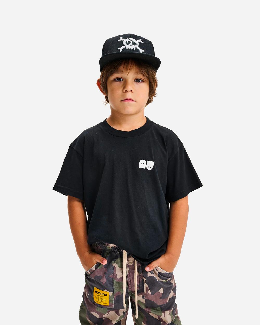 Crafted from soft, breathable cotton, the Black base is adorned with Nununu’s iconic “little spookies” characters across the chest, adding a fun and edgy twist. The lightweight fabric ensures all-day comfort, while the minimalist cut makes it easy to style with anything from joggers to shorts.