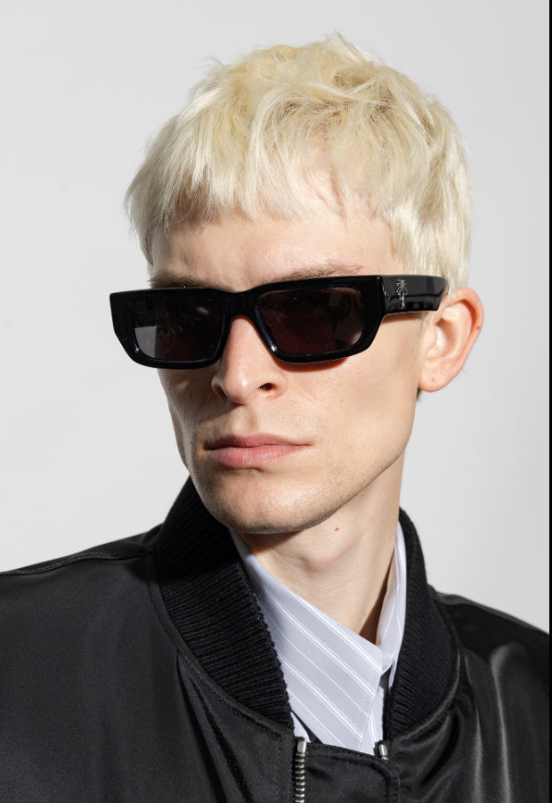 A sharp, modern statement infused with Palm Angels’ signature West Coast edge, the Rectangle Palm Logo Sunglasses in Black deliver bold attitude in a clean, sculptural frame. The thick acetate construction gives the silhouette a confident presence, while maintaining a lightweight, comfortable feel for everyday wear.