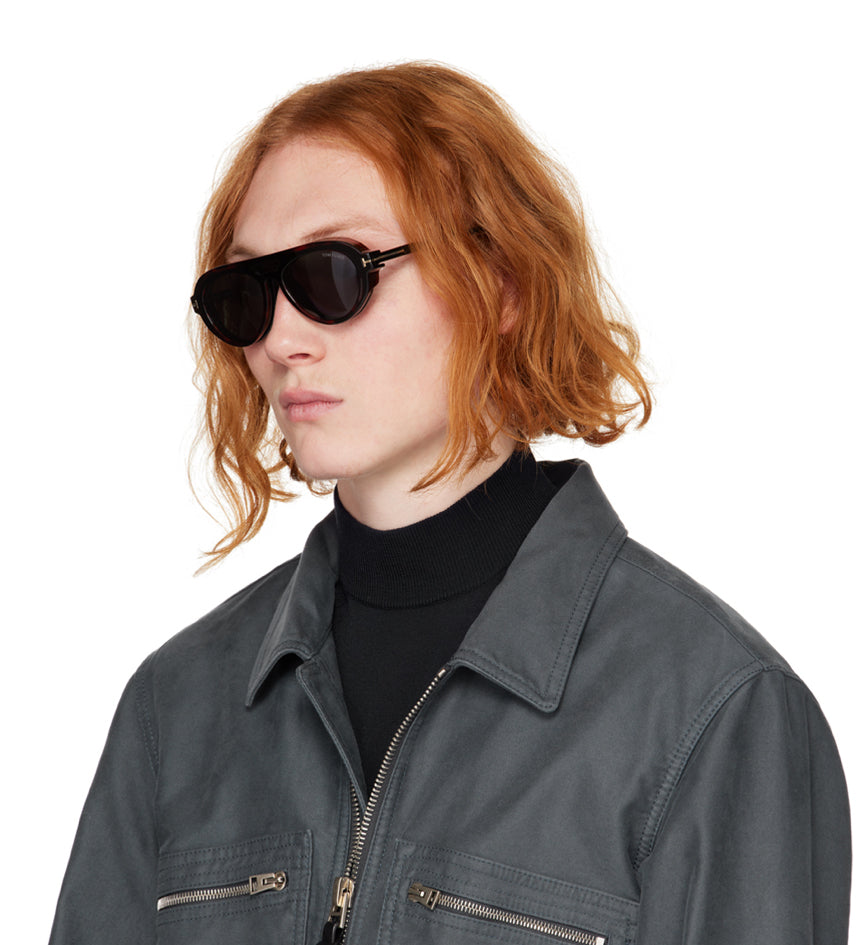 Lentes de sol Tortoiseshell de Tom Ford en negro y carey.