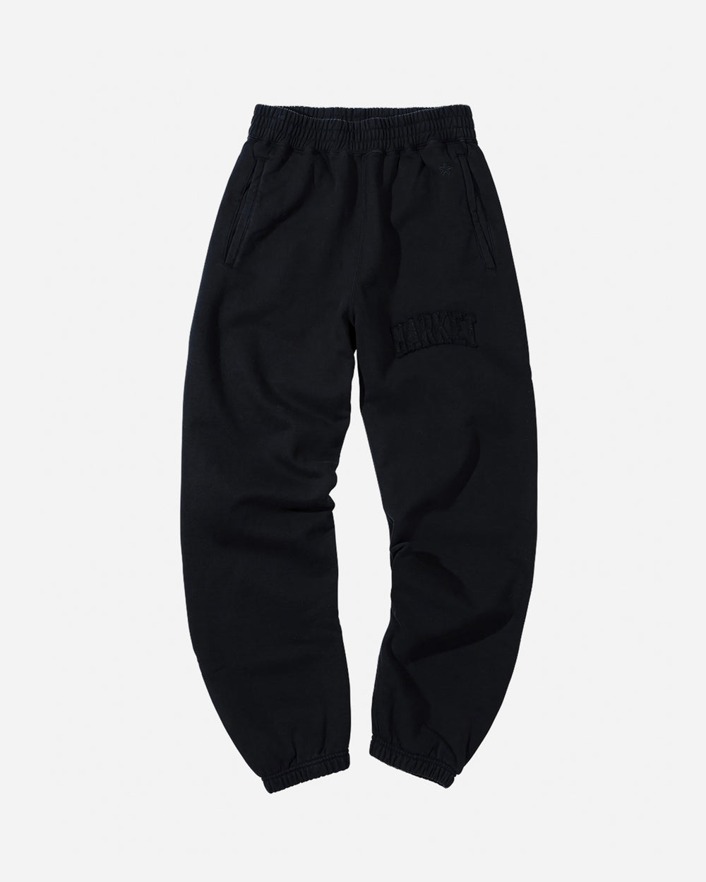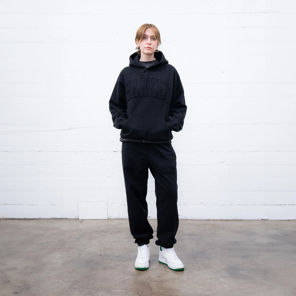 The Market Washed Arc Sweatpants deliver effortless comfort with a premium streetwear edge. Crafted from soft, washed black fleece, these sweats feature a relaxed silhouette with elastic cuffs and waistband for an easy, everyday fit. The standout detail is the tonal MARKET arc logo embroidered on the thigh, adding subtle texture without overpowering the minimalist design.