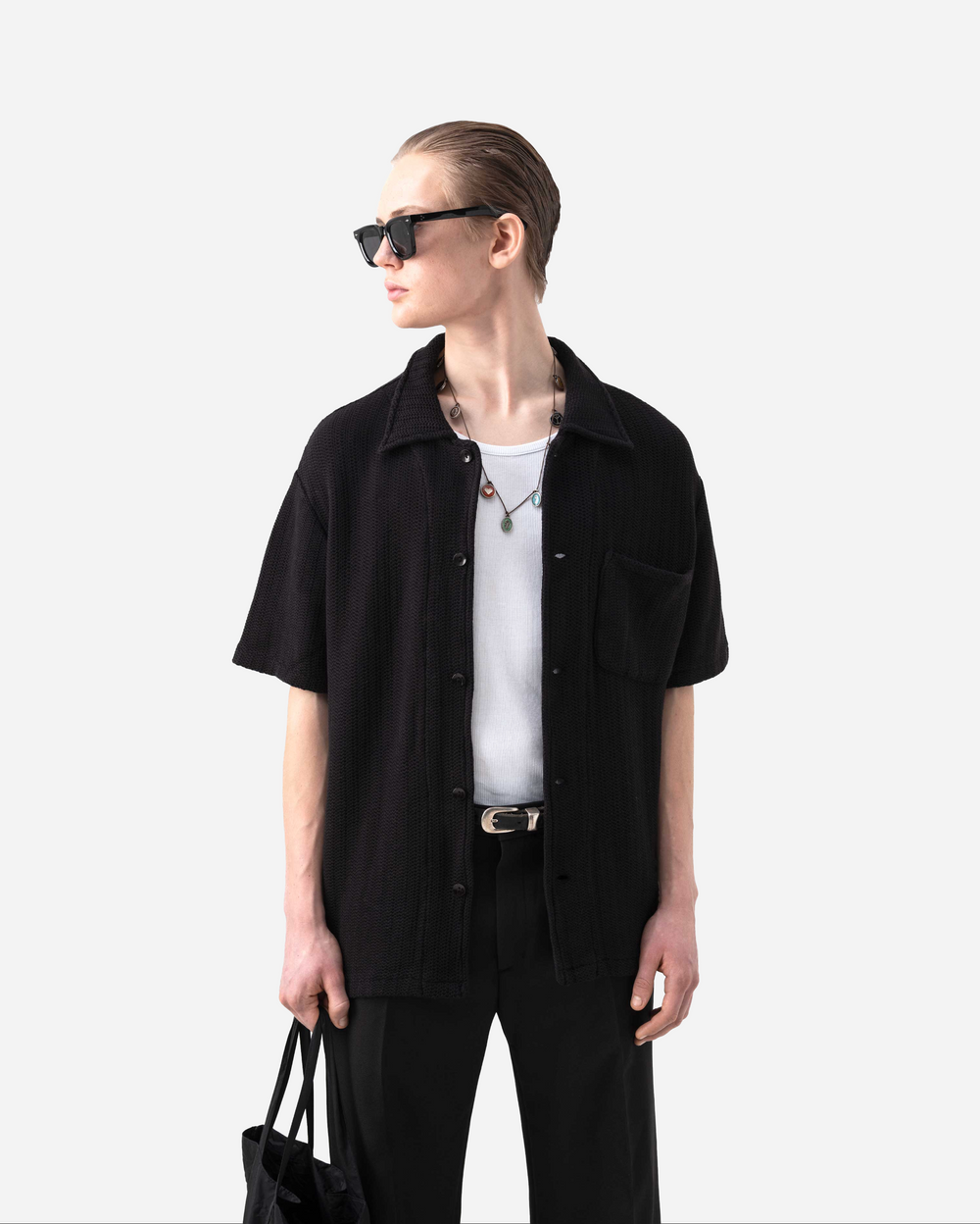 Crafted from 100% cotton, this black jacquard shirt features a relaxed fit and a subtle textured pattern for a refined yet casual look. Perfect for any occasion, it blends comfort and style, making it a versatile staple for both casual and elevated outfits.