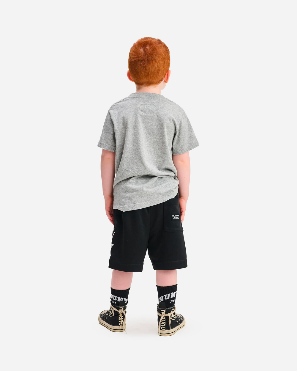 Made from soft, breathable cotton, the shorts feature an elastic waistband for easy wear, a single patch pocket on the back with Nununu’s urban label, and a striking white lightning bolt graphic on the leg. The design is sleek yet playful, perfect for active days or laid-back lounging.