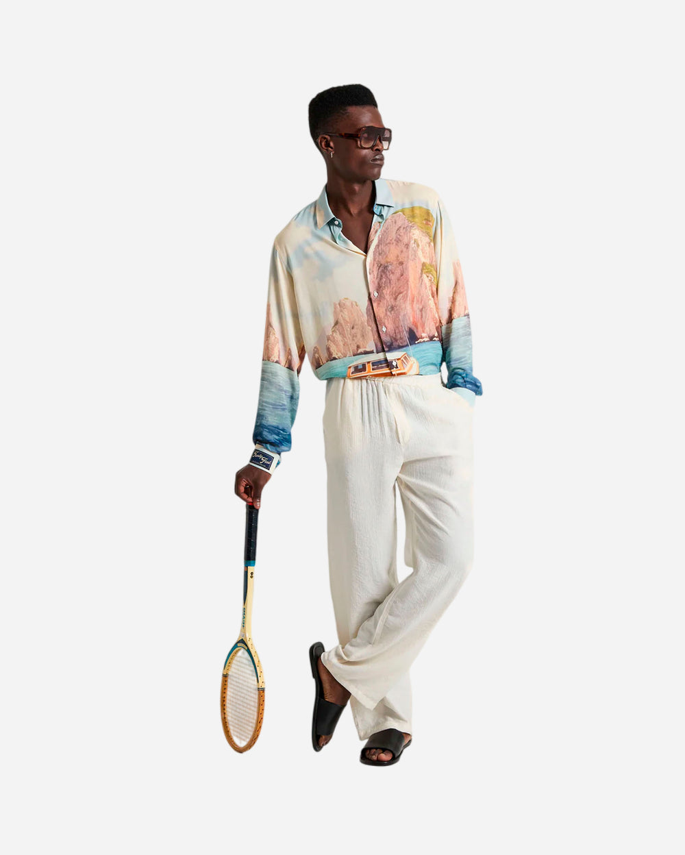 Confeccionada en Italia con viscosa de primera calidad, esta camisa ofrece una comodidad y un estilo excepcionales. Con el estampado "COAST", cada detalle refleja el compromiso con la calidad. La meticulosa costura doble añade un toque de sofisticación a esta prenda esencial y acogedora.