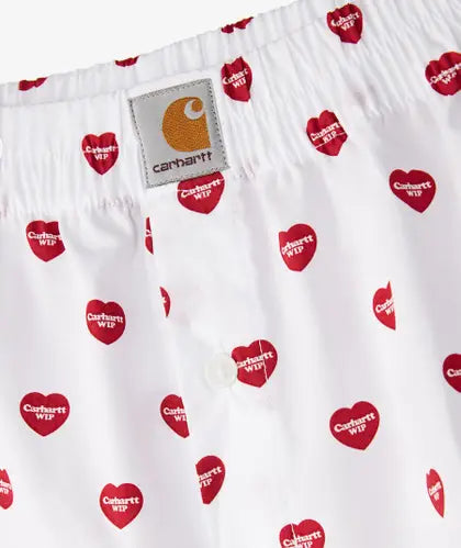 Bóxer de algodón Carhartt WIP para hombre con estampado de corazones sobre fondo blanco.