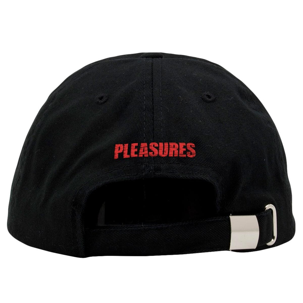 The Pleasures “Ghost World” Cap delivers a bold and minimal look with streetwear attitude. Crafted in black cotton, it features striking red embroidered lettering that reads GHOST WORLD, giving the piece a distinctive and edgy aesthetic.