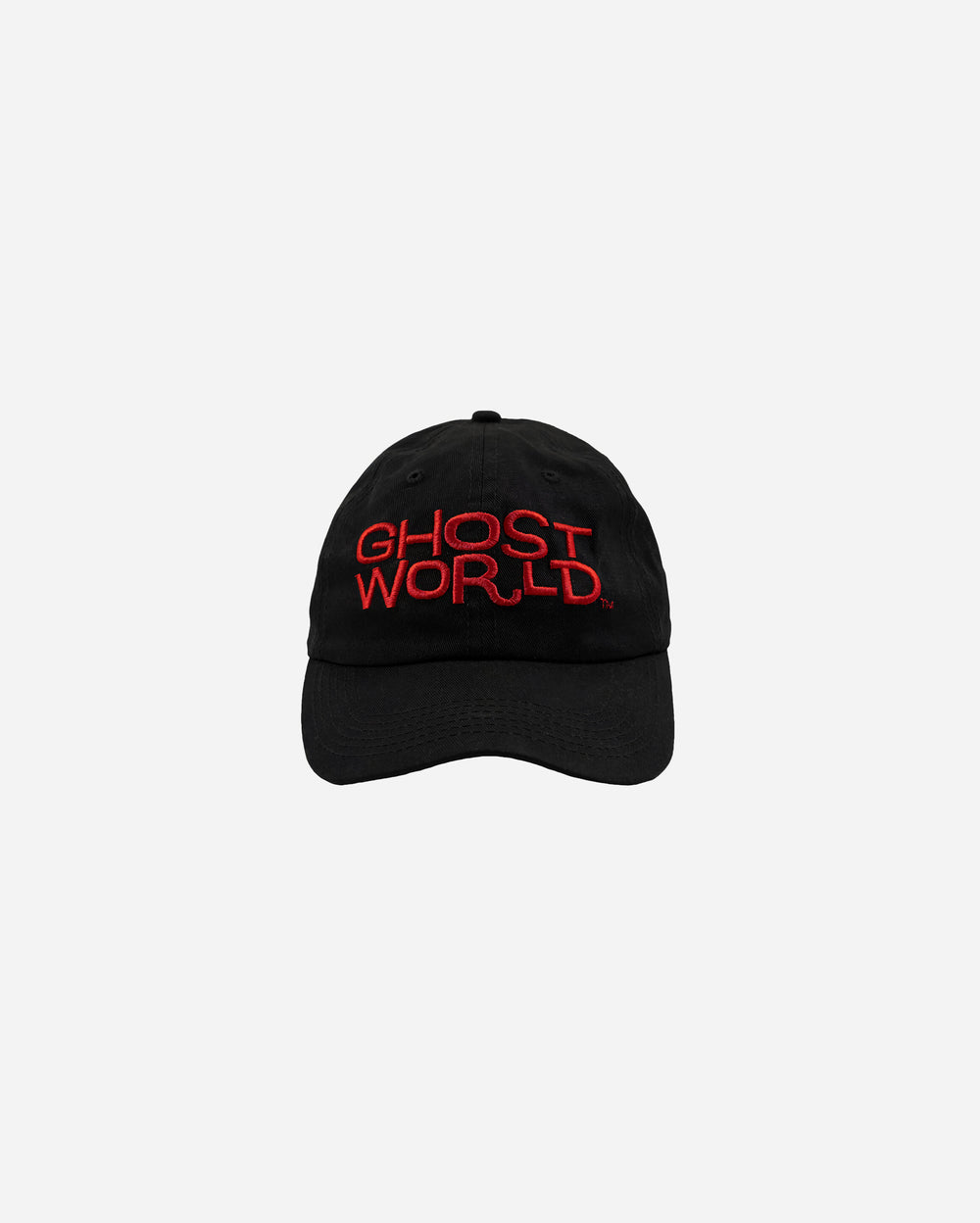 Bold red embroidered “GHOST WORLD” design on the front