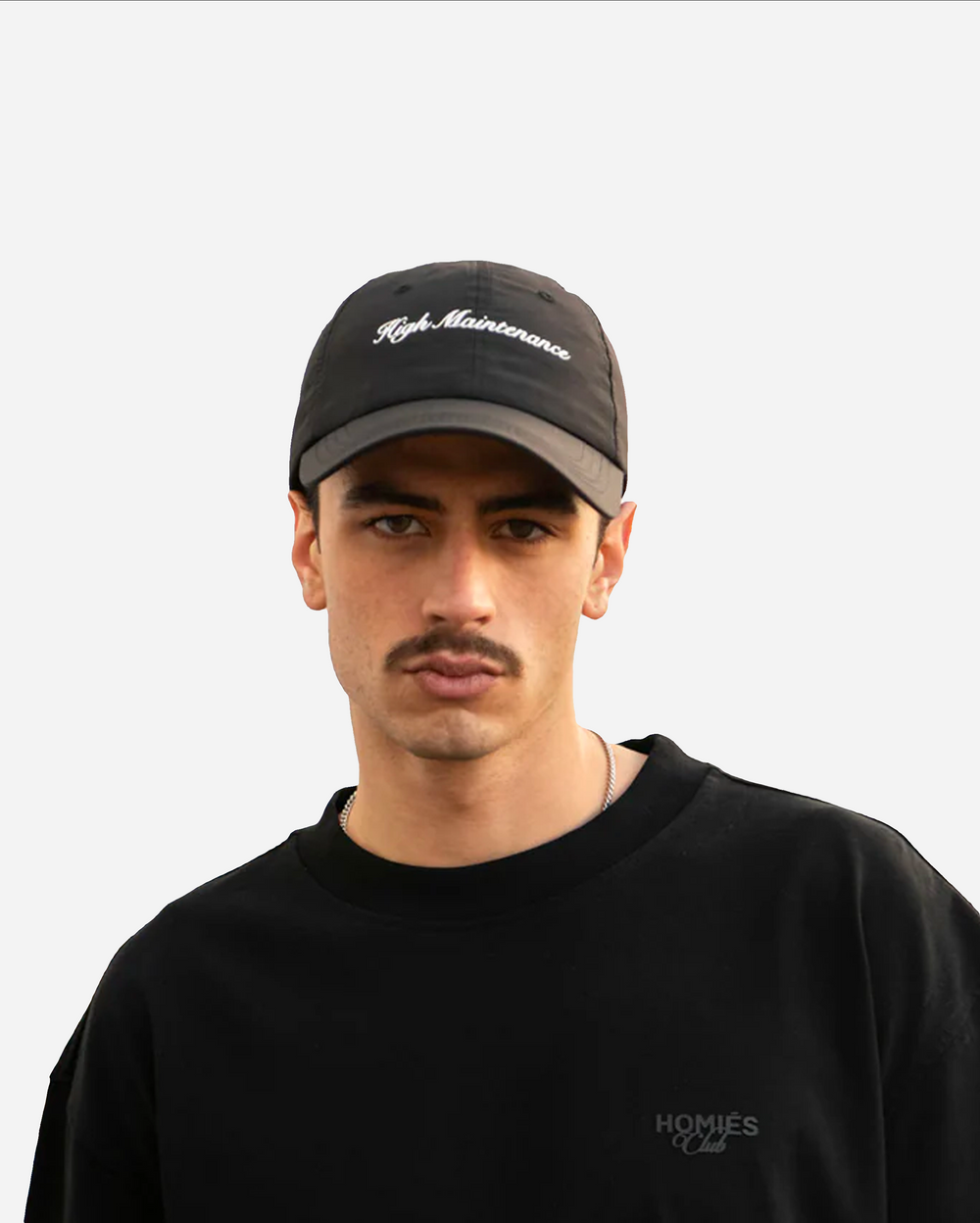 100% polyester cap in black. Featuring a white rubber print on the front. Because we are all “High Maintenance” when we need to be.