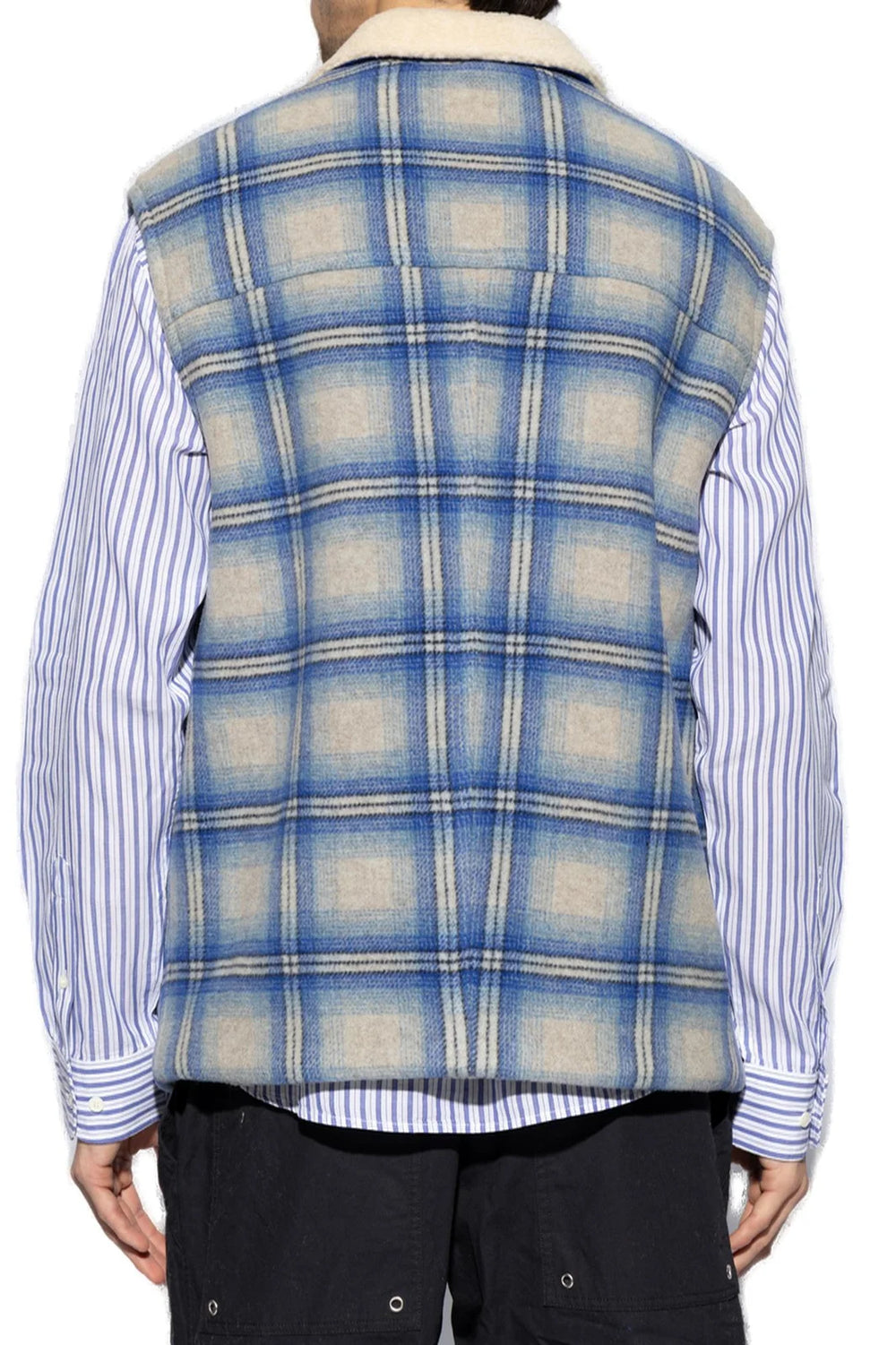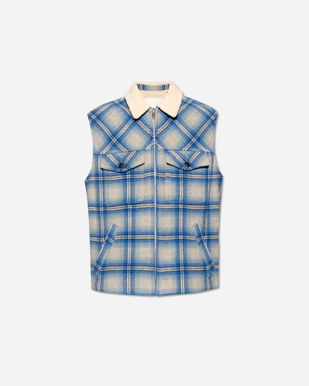 • Chaqueta de lana a cuadros azules sin mangas