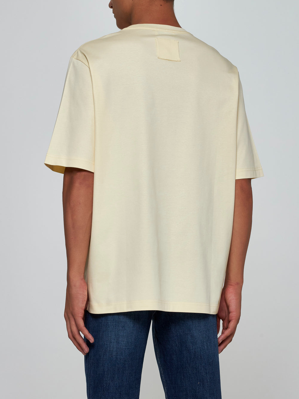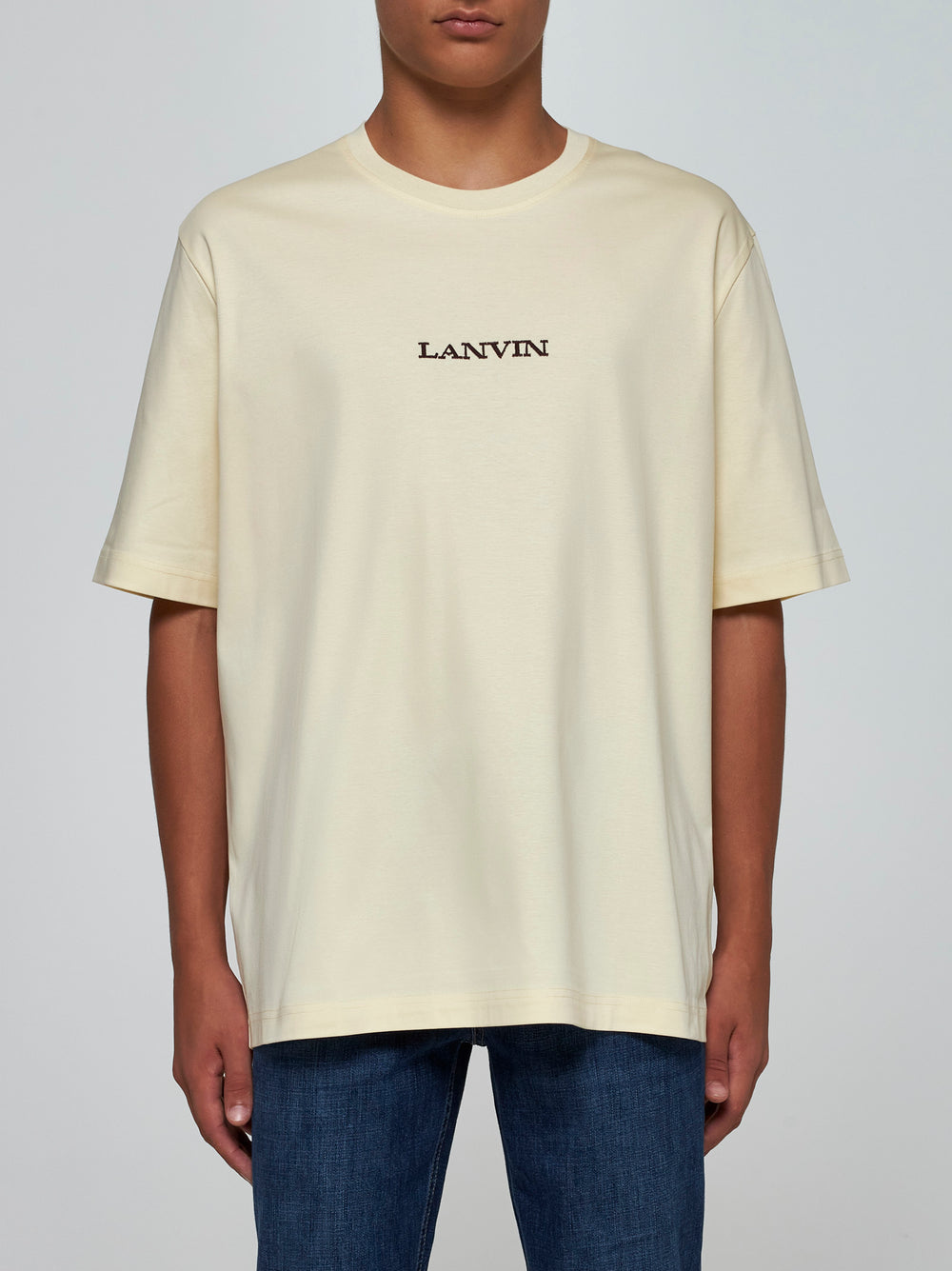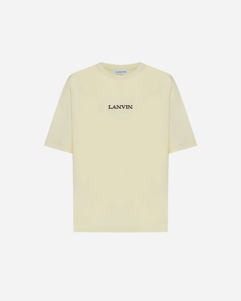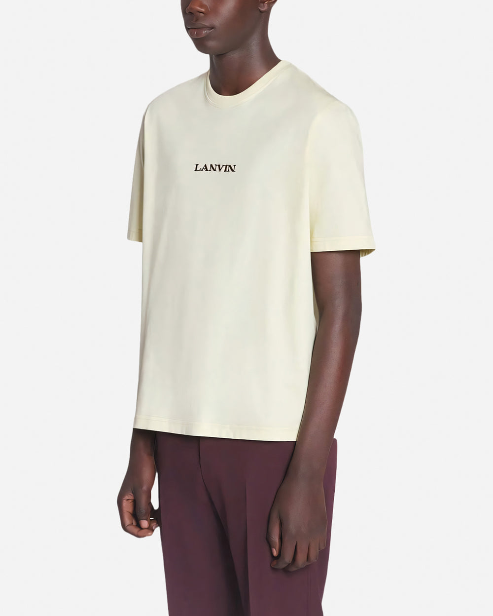 A refined essential that blends minimalism with luxury. This LANVIN T-shirt comes in a soft, pale cream tone and features a clean LANVIN logo centered on the chest, adding a subtle yet sophisticated touch.