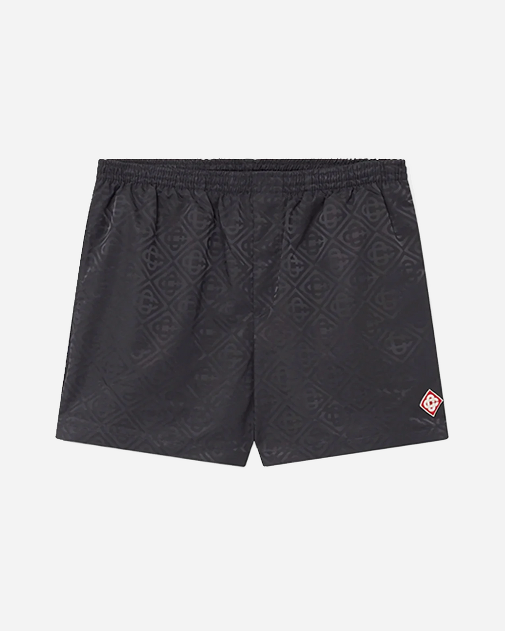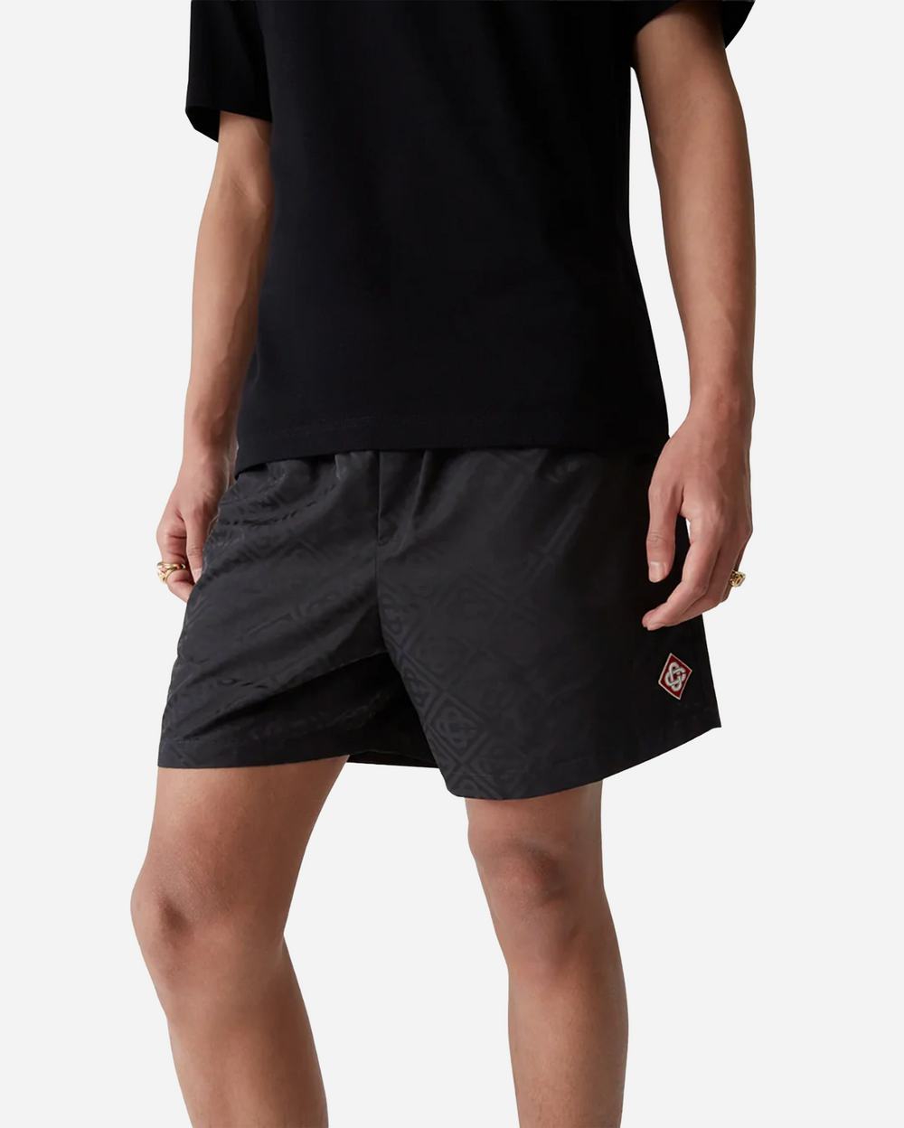 The Casablanca Jacquard Swim Shorts merge sophisticated design with relaxed functionality. Crafted from lightweight jacquard fabric, these shorts feature the brand’s signature monogram pattern subtly woven into the surface, offering texture and depth with a refined finish.