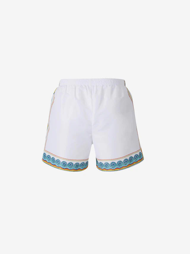 Ideal for poolside relaxation or summer escapes, these shorts capture the essence of Casablanca’s elegant resort aesthetic — where craftsmanship meets timeless vacation style.