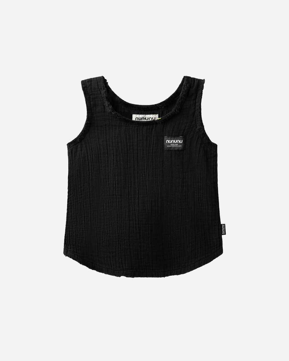 Crafted from barely-there muslin cotton, the tank delivers breathable softness and effortless comfort. The hot pink hue radiates energy, while the raw edges and relaxed fit add a casual, rebellious touch that’s true to Nununu’s DNA.