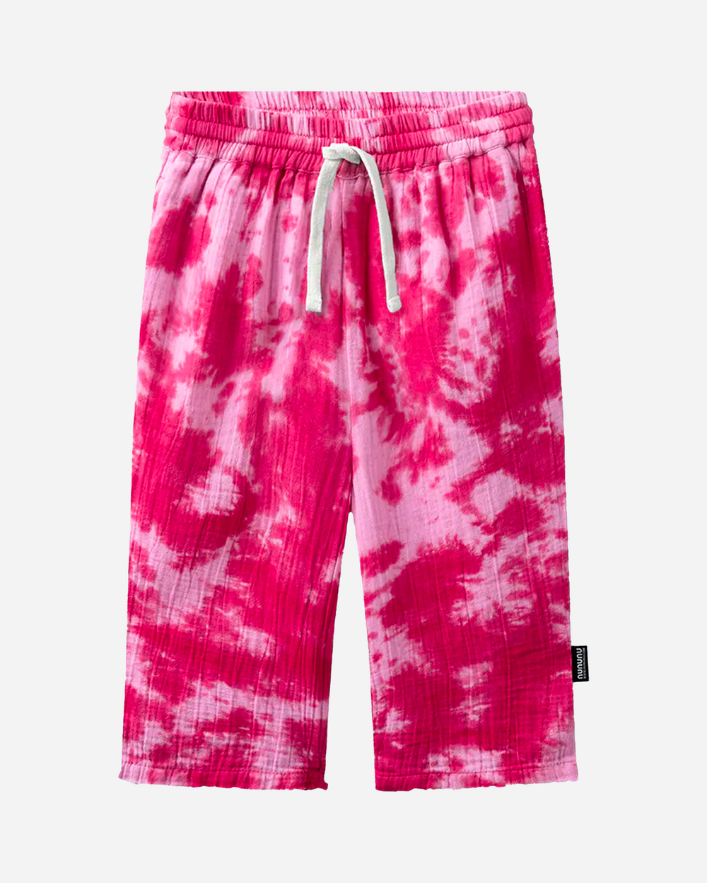 Crafted from barely-there muslin cotton, they deliver maximum breathability and comfort on hot days. The relaxed silhouette features a soft elastic waistband with drawstring, raw edges for a laid-back vibe, and side pockets for everyday practicality. The hot pink hue, kissed with a subtle tie-dye effect, makes each pair unique and full of personality.
