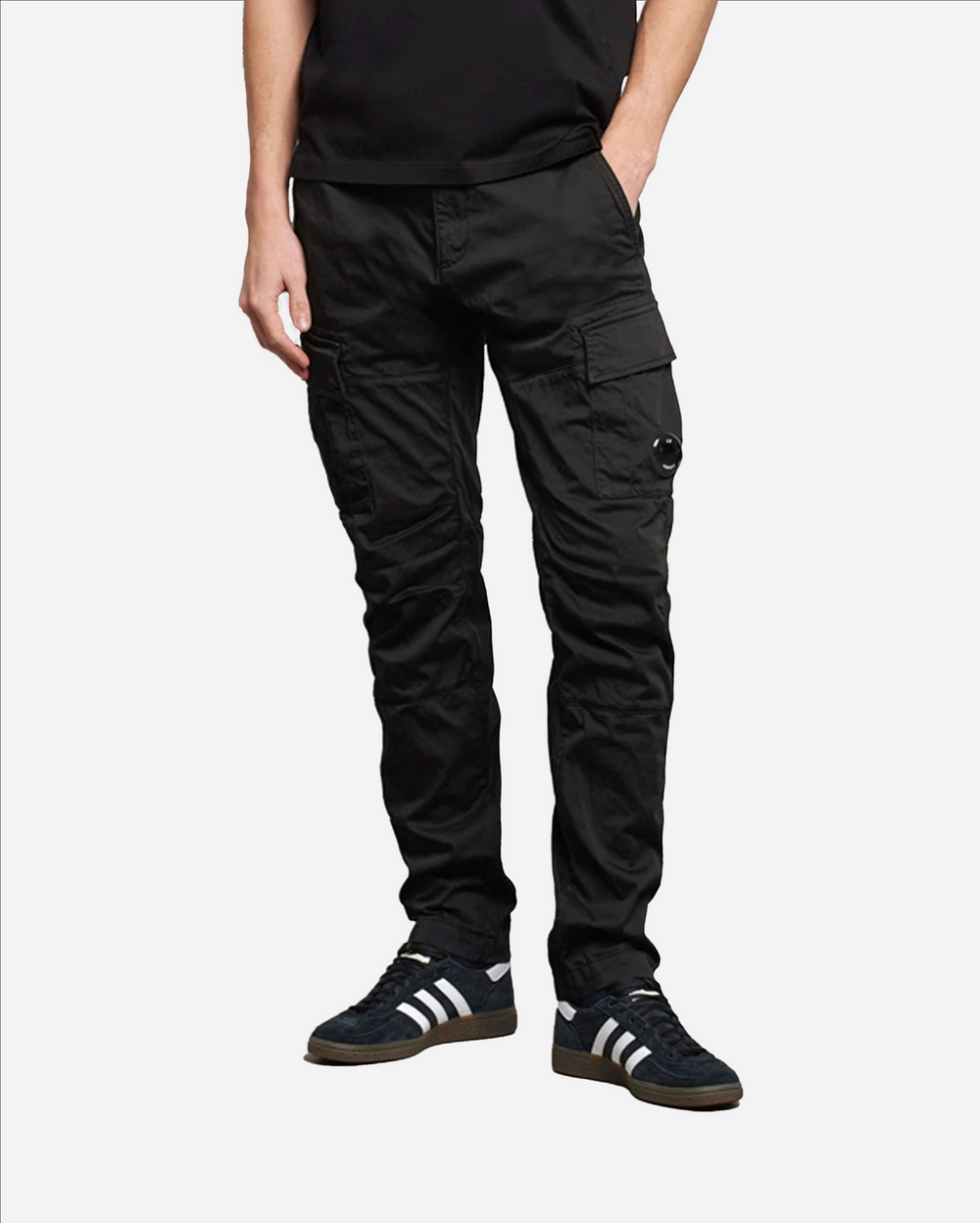 Cintura ajustable con cordón, cierre de botón y cremalleras, trabillas para cinturón, bolsillos laterales, bolsillos cargo con solapa, detalle de lente, bolsillos traseros con solapa, parche de logo bordado en la parte trasera, teñido en prenda, ajuste ergonómico. 98% ALGODÓN 2% ELASTANO