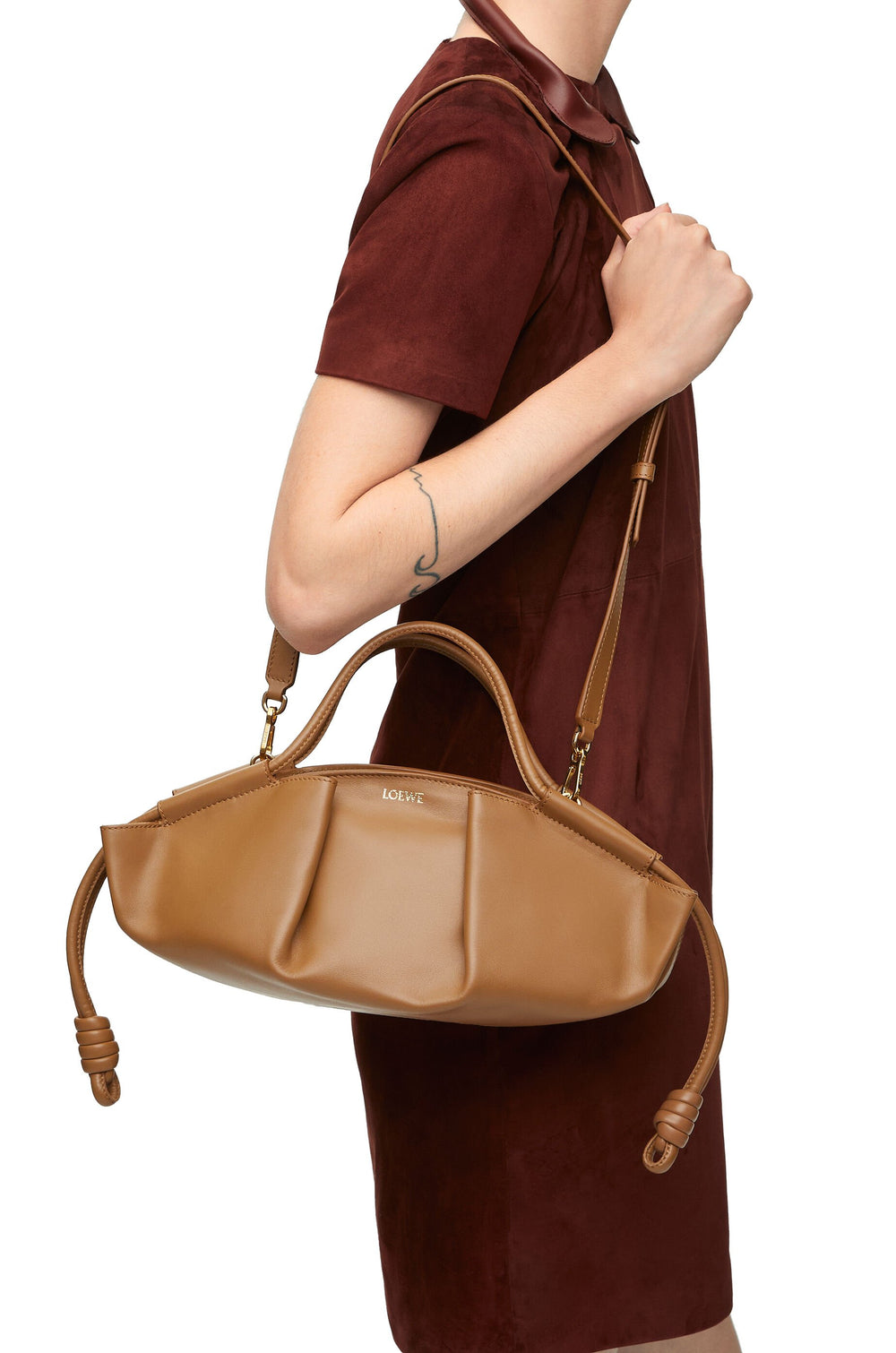 Inspirado en los archivos de LOEWE, el bolso LOEWE Paseo presenta pliegues distintivos y asas tubulares, terminados con nudos enrollados y LOEWE en relieve de lámina dorada. Confeccionados en piel de becerro napa suave, ligera y flexible, la colección de bolsos de cuero Paseo también está disponible en formas de bandolera, incluyendo el bolso Paseo en tamaños medianos y pequeños.