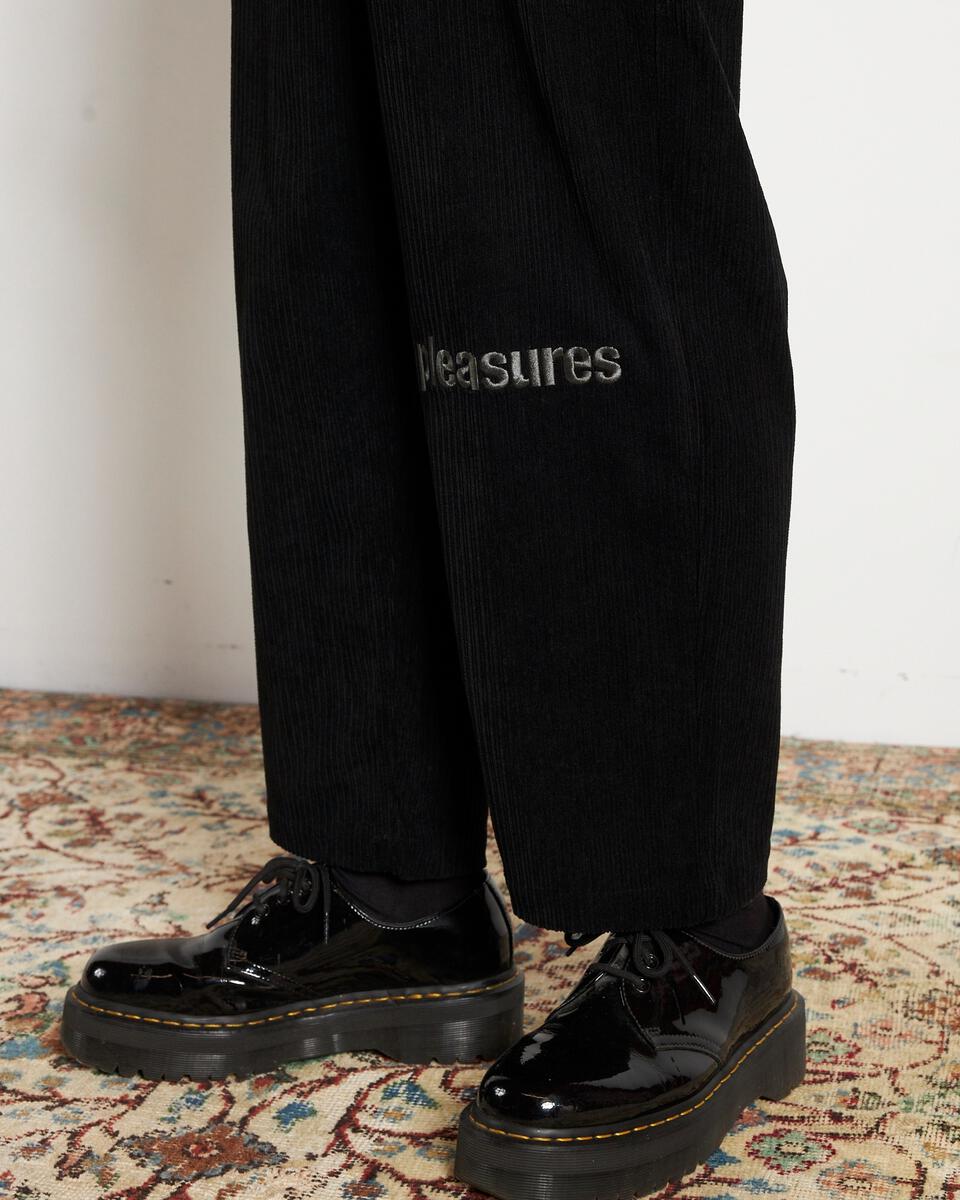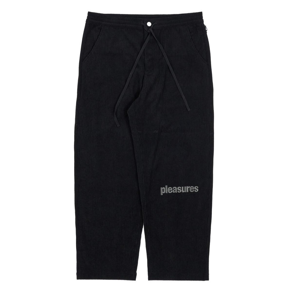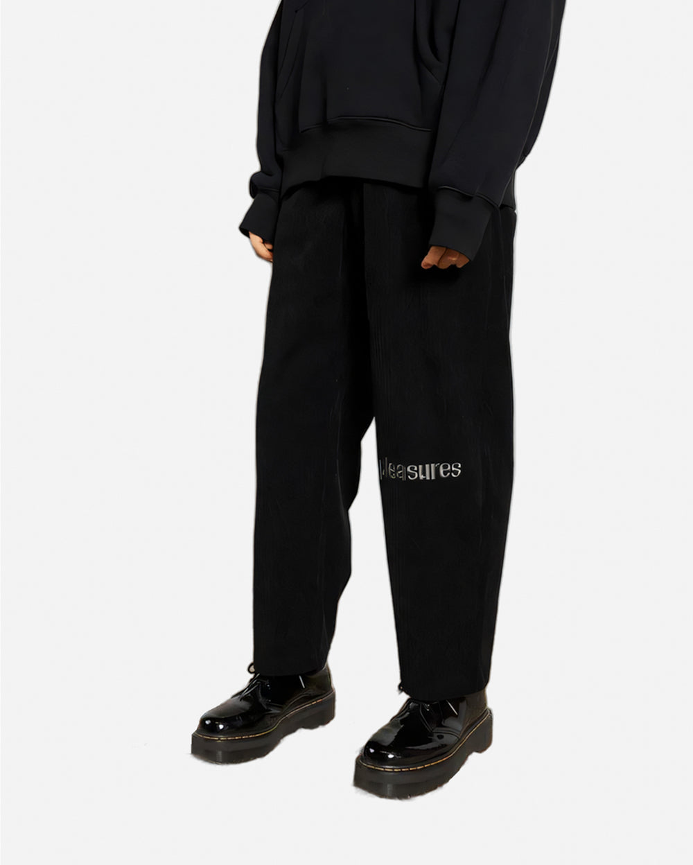 Bring effortless style and comfort to your everyday rotation with the Pleasures Corduroy Relaxed Pants. Designed in a deep black colorway, these pants feature a soft corduroy texture and a relaxed, straight-leg fit for a laid-back streetwear look. The adjustable drawstring waist ensures a customized fit, while the tonal “pleasures” logo embroidered on the leg adds a subtle, clean finish.