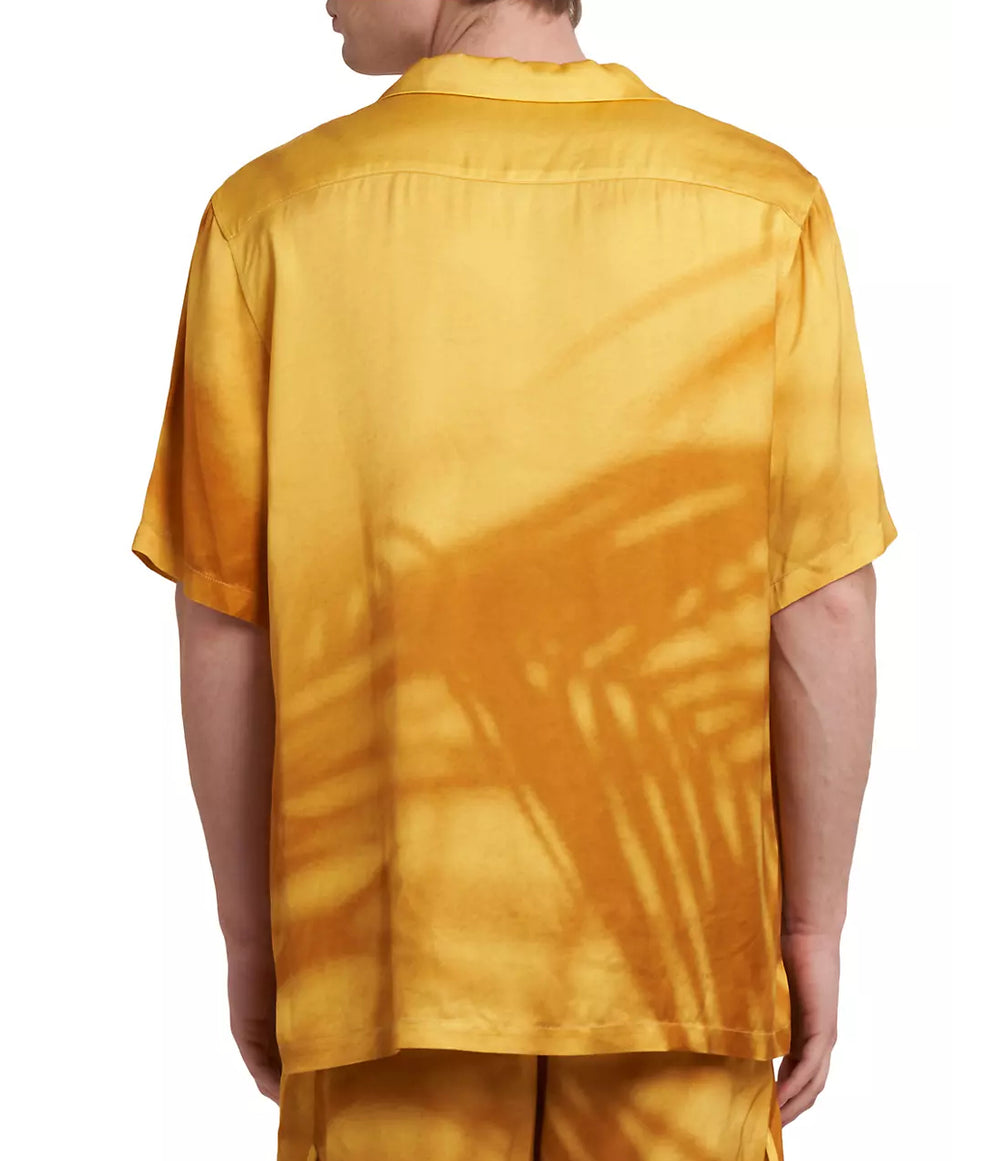 Camisa de manga corta de viscosa orgánica estampada ecológicamente con bolsillo en el pecho izquierdo y logo bordado, botones de plástico reciclado. 100% viscosa orgánica.