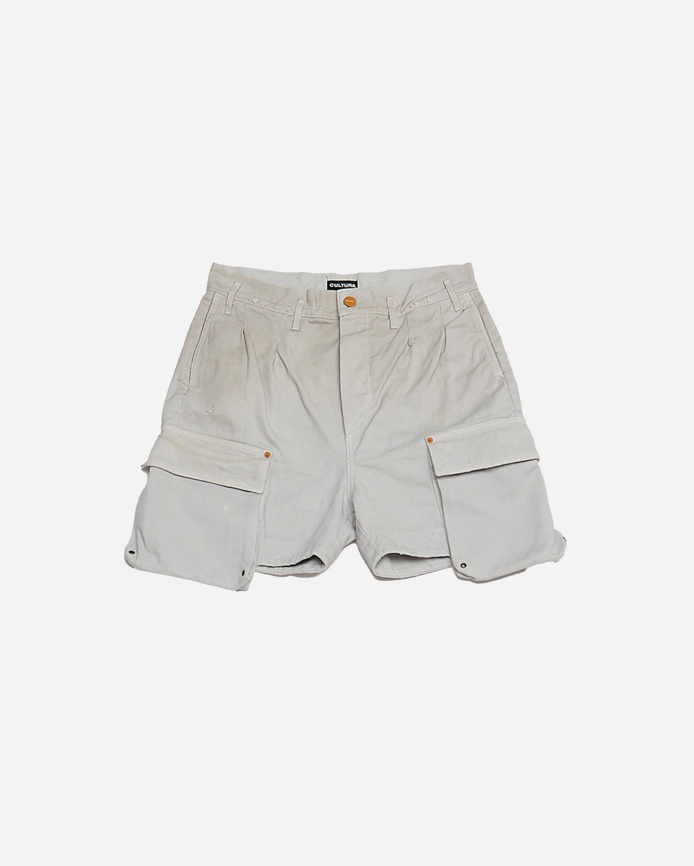 These Cultura Cargo Shorts deliver a functional yet stylish silhouette inspired by classic utility wear. Designed in a light, neutral tone, they feature oversized cargo pockets that add both practicality and a bold aesthetic.