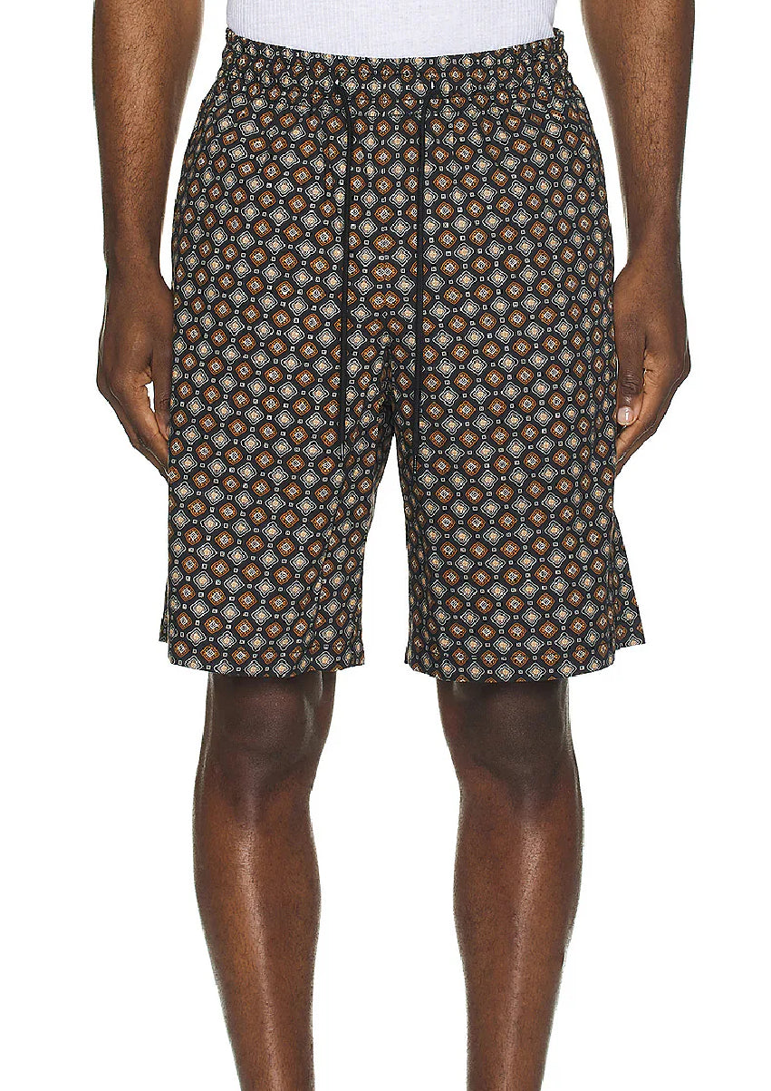 The A.P.C. Lloyd Noir Shorts deliver an elevated take on warm-weather essentials. Crafted from lightweight, breathable fabric, they feature an all-over geometric print that matches the Lloyd Noir shirt for a coordinated summer look. The elastic waistband with adjustable drawstring ensures a comfortable, personalized fit, while the relaxed cut adds ease and movement for everyday wear.