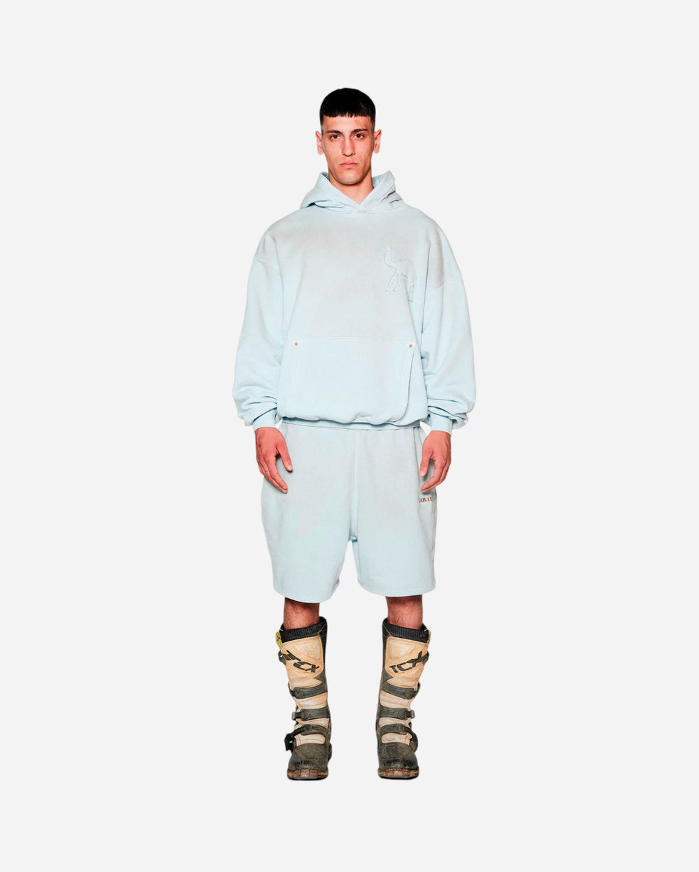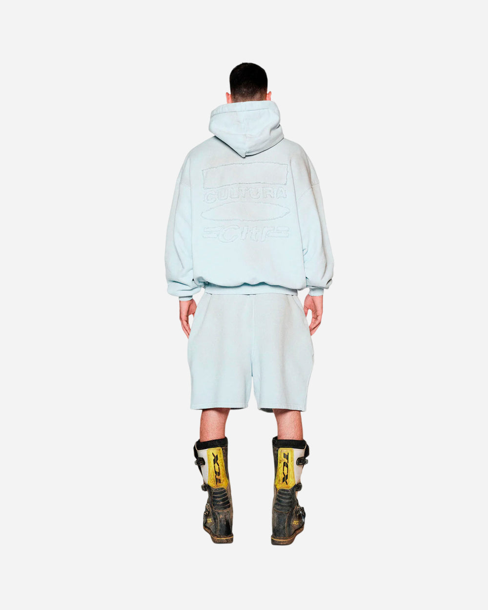 Shorts de jersey azul cielo con cinturilla elástica ajustable para mayor comodidad.