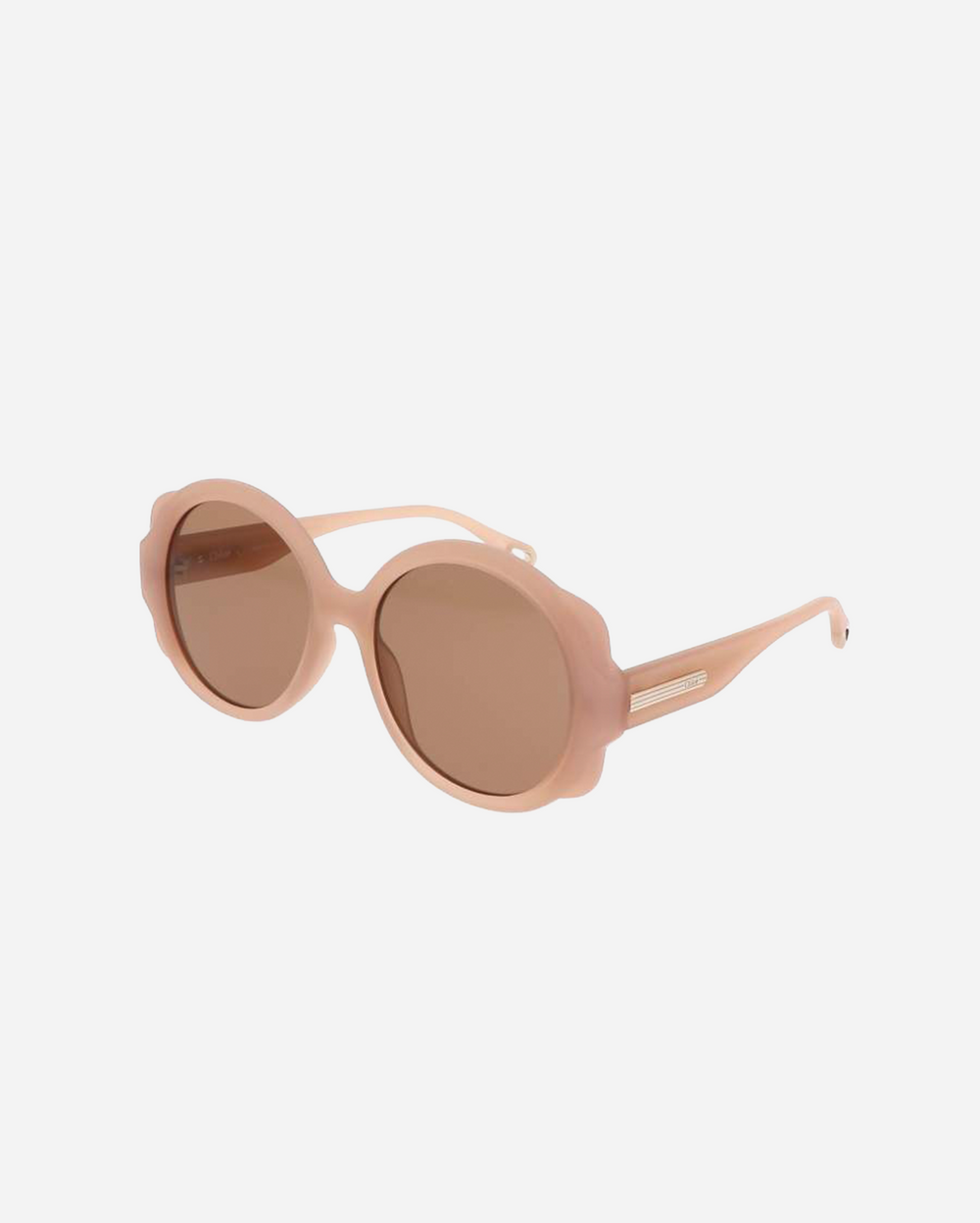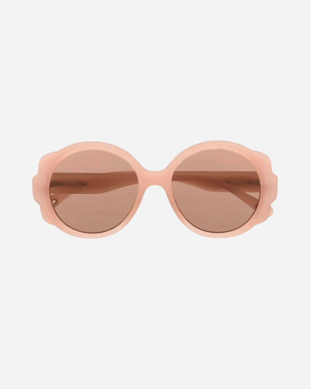 Diseño redondo con detalles de festón en la parte frontal de la montura. Construcción en rPET, 100 % plástico reciclado posconsumo. Placa con logotipo en la varilla con motivo Godron. Icónico corte en forma de lágrima en el terminal.