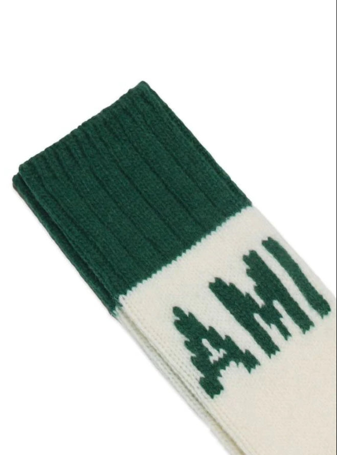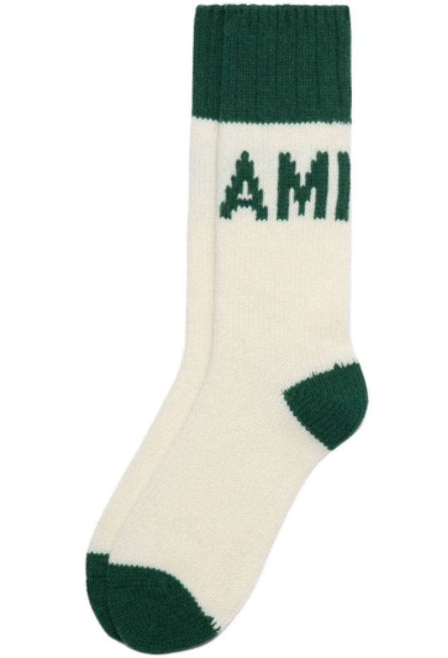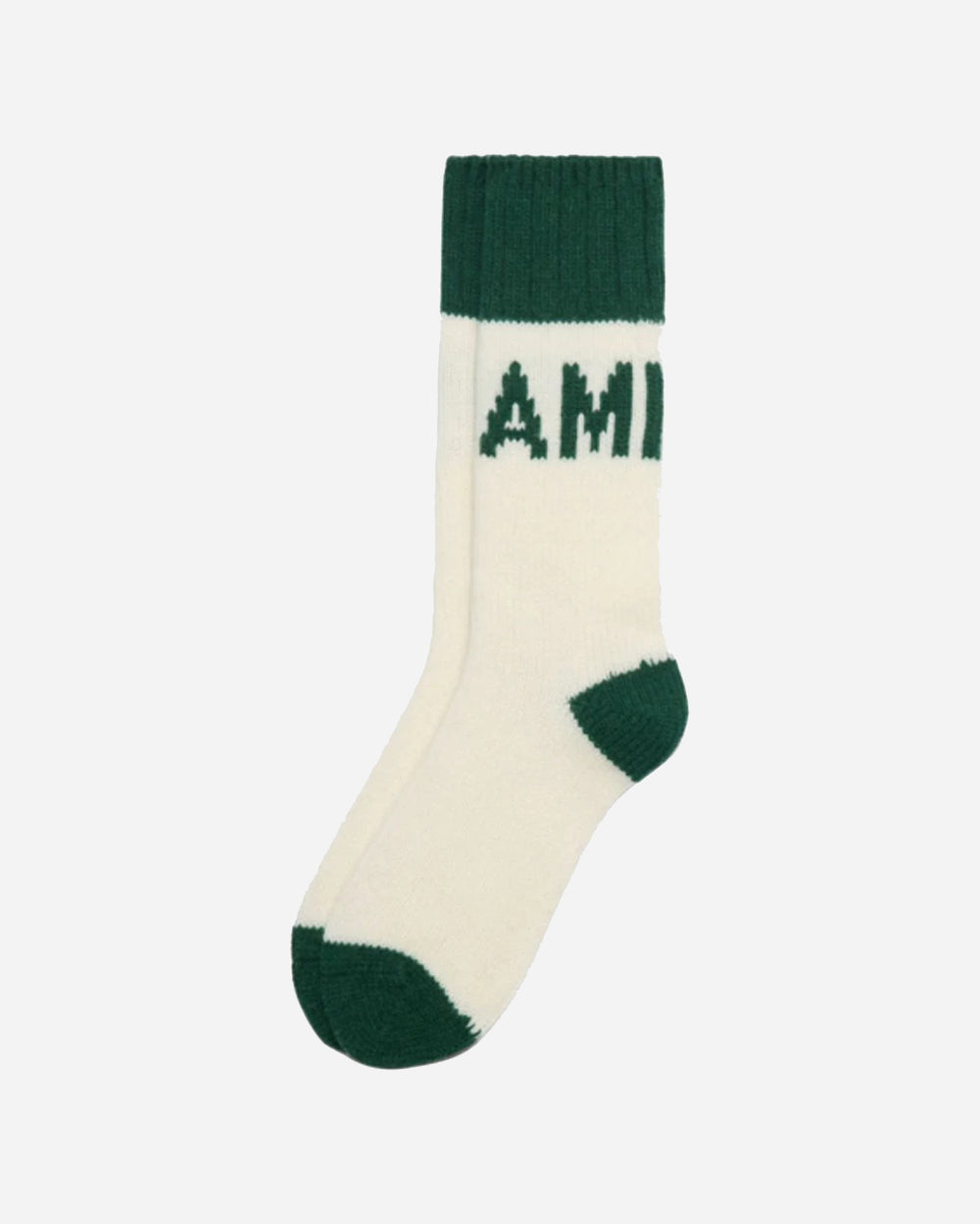 Amiri Two-Tone Logo Sock – Cream / Forest Green