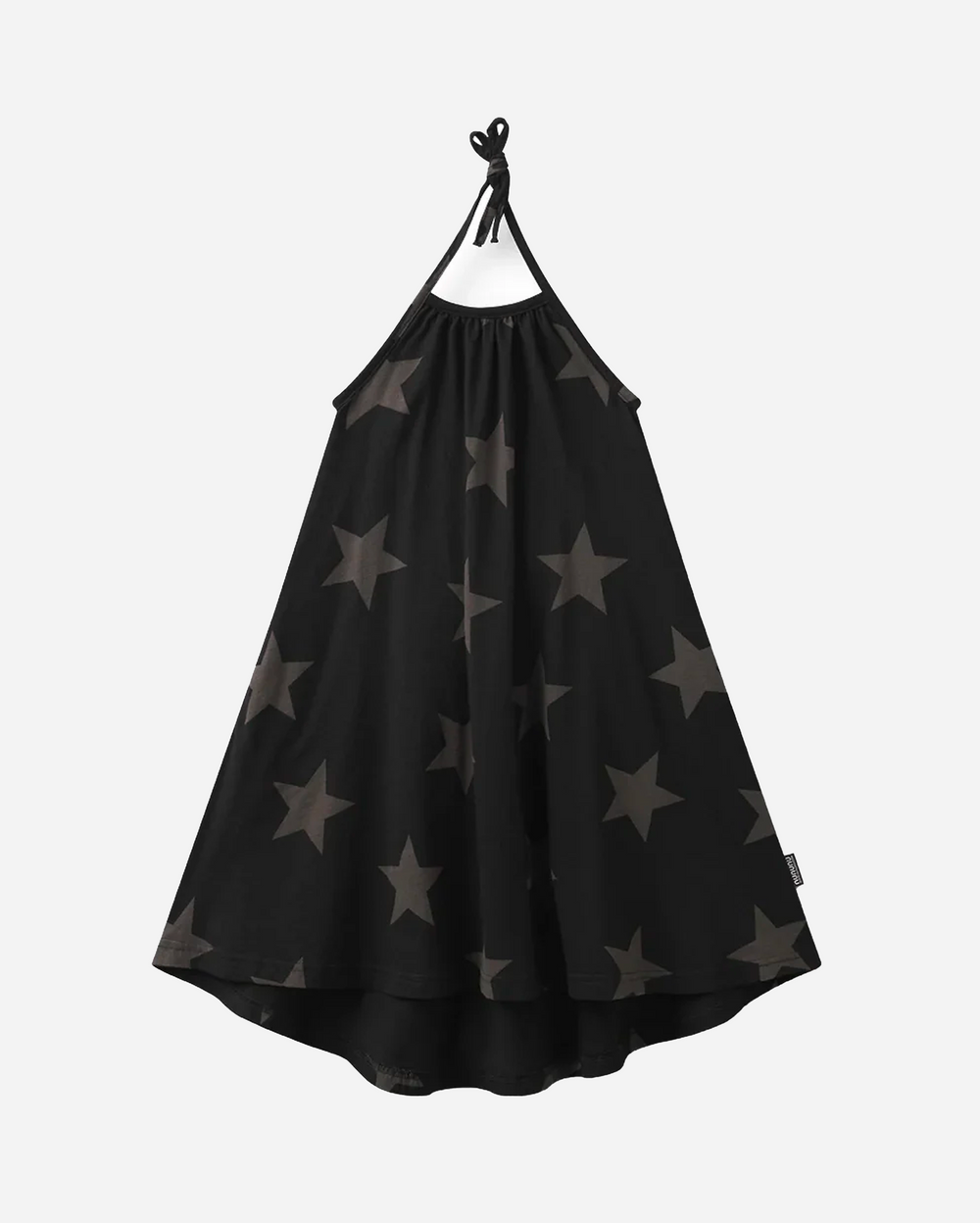 Crafted from soft, breathable cotton, the dress features a relaxed silhouette that ensures comfort and freedom of movement. The standout detail is the collar adorned with Nununu’s signature star motif, adding a playful yet edgy twist to the classic black base.