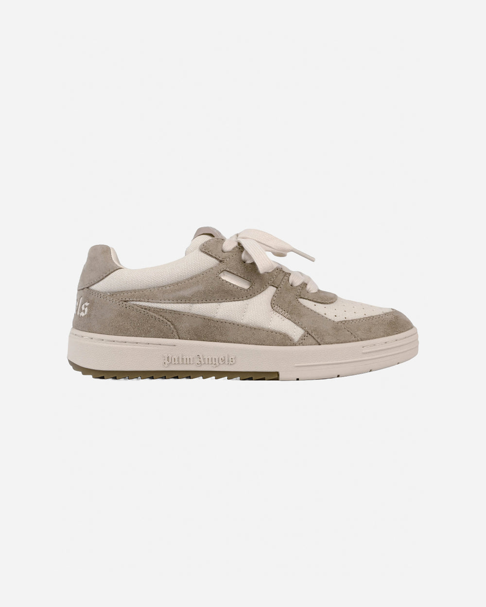 A clean, modern take on the classic low-top, the Palm Angels Palm Sneaker in Beige/White delivers the brand’s signature Cali-luxe attitude through a refined, versatile palette. The shoe combines soft suede overlays with breathable mesh panels, creating a balanced texture mix that feels elevated yet effortless.