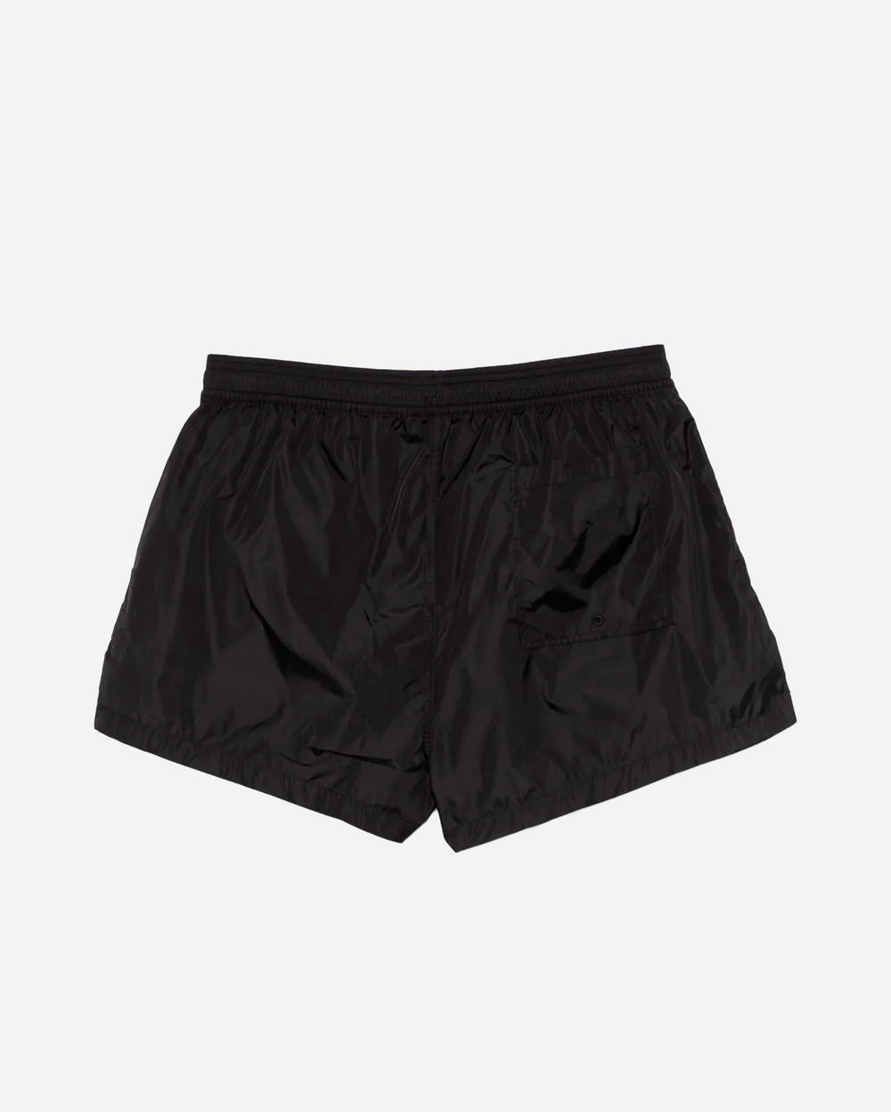 A sleek, modern essential infused with Off-White’s unmistakable graphic DNA, the “Vibe Arrow” Swimshorts deliver a minimalist silhouette elevated by a bold, monochrome statement. Crafted from lightweight technical nylon, the shorts feature a glossy black finish that subtly reflects light, creating depth and movement.